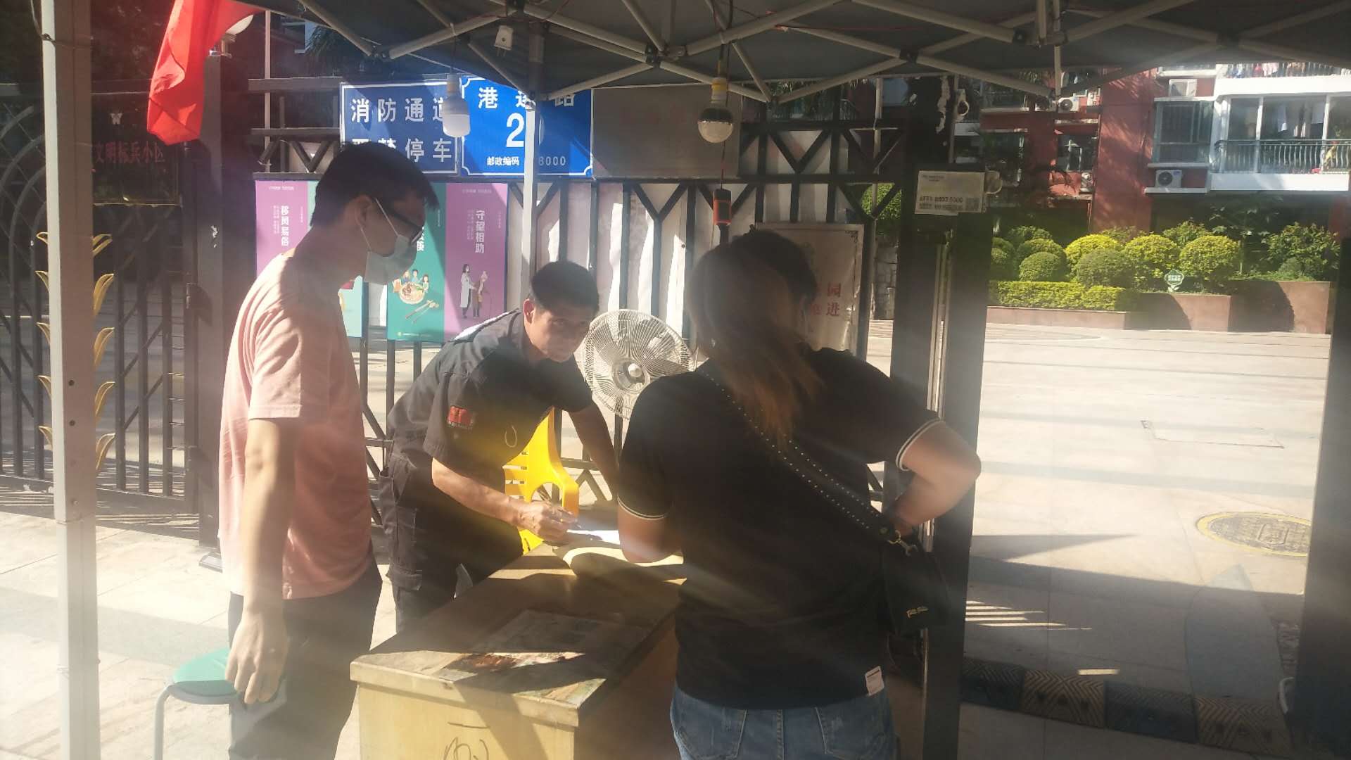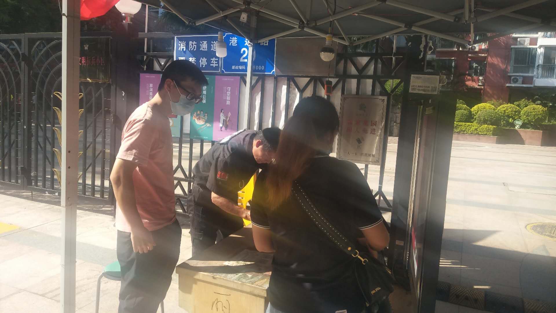 社区工作人员与健康驿站做好对接工作,迎接香港返深人员返回社区居家隔离。到小区后,小区工作人员首先为居家隔离人员测量体温、登记好信息。社区工作人员还为居家隔离人员搬行李,核对居家隔离人员居住信息,赠送防疫物资等。社区工作人员告知居家隔离人员,有什么需求,可以与小区物业服务中心联系,让小区物业服务中心协助处理,也告知居家隔离人员,物业服务中心工作人员会为其送快递、外卖,还有就是会为其清理生活垃圾等。