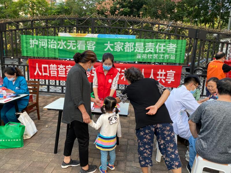 活动中,莲花社区通过悬挂横幅、派发宣传资料的方式,向社区居民宣传人口普查相关知识、向社区居民派发人口普查宣传手册图片等方式,多角度、全方位开展宣传教育活动,掀起社区居民人人了解人口普查、人人响应人口普查、人人支持人口普查、人人配合人口普查的良好氛围,为人口普查工作顺利开展奠定基础。