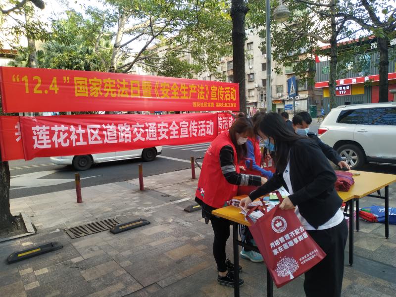 为进一步加强道路交通安全知识的宣传教育,切实增强广大社区居民及学生的道路交通安全意识,预防杜绝道路交通事故的发生。2020年12月4日,莲花社区组织工作人员在名骏豪庭平方超市门口开展一场以“文明交通 从我做起”为主题的道路交通安全教育宣传活动。