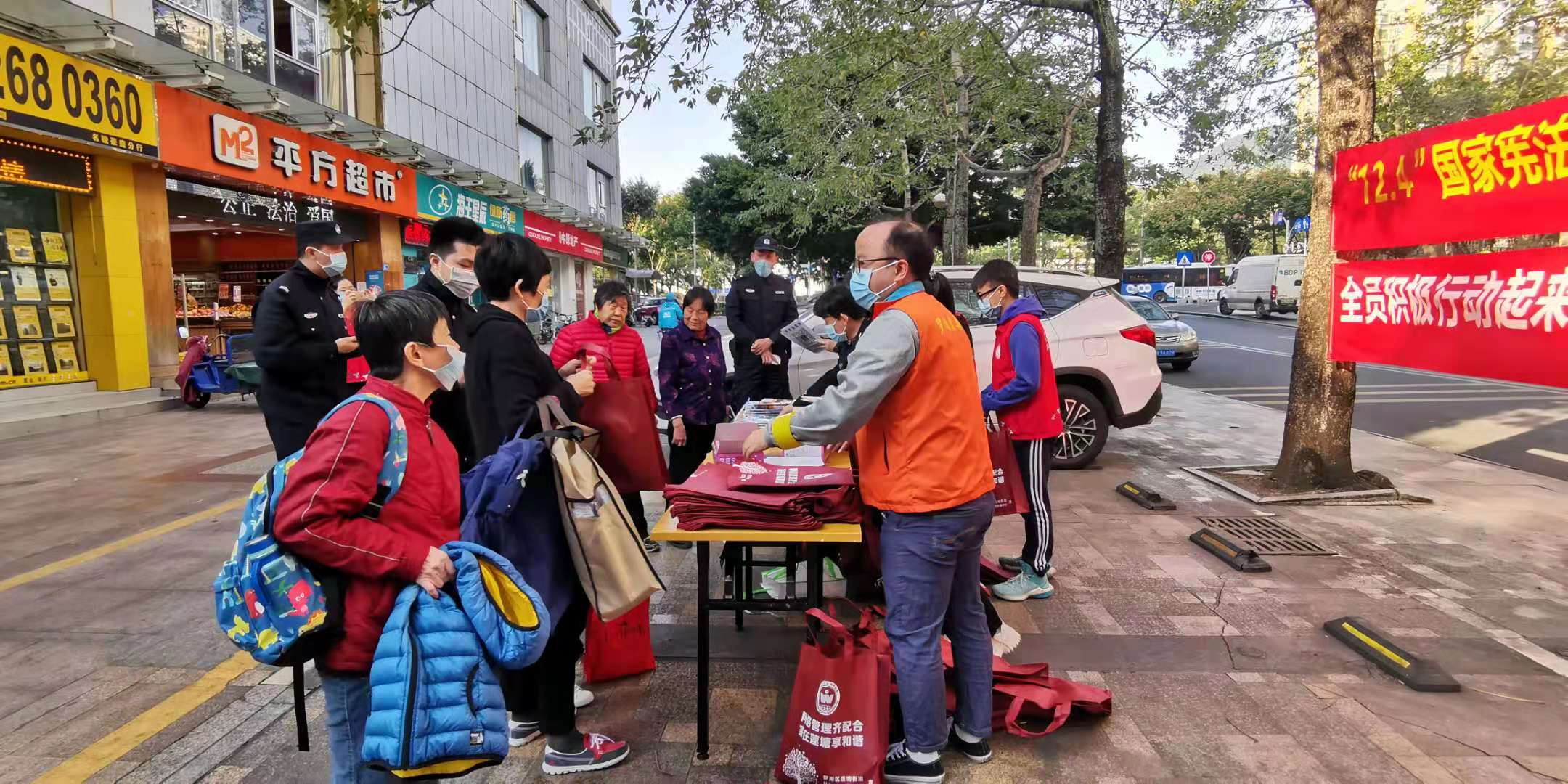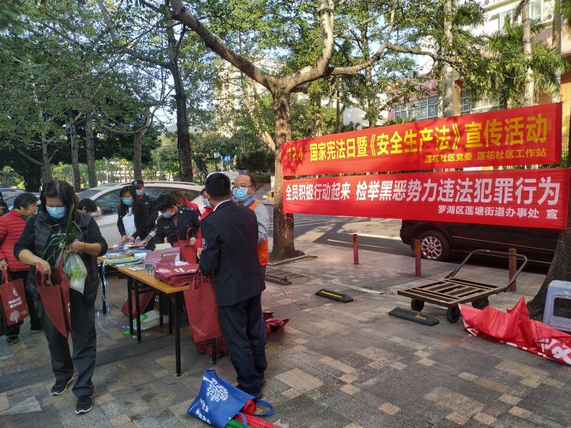 为严厉打击各类涉黑涉恶违法犯罪,维护社会治安稳定,保障社区居民安居乐业,2020年12月4日下午,莲花社区党委组织全体工作人员,联合莲花社区警务室,在名骏豪庭平方超市门口开展扫黑除恶专项斗争宣传活动。