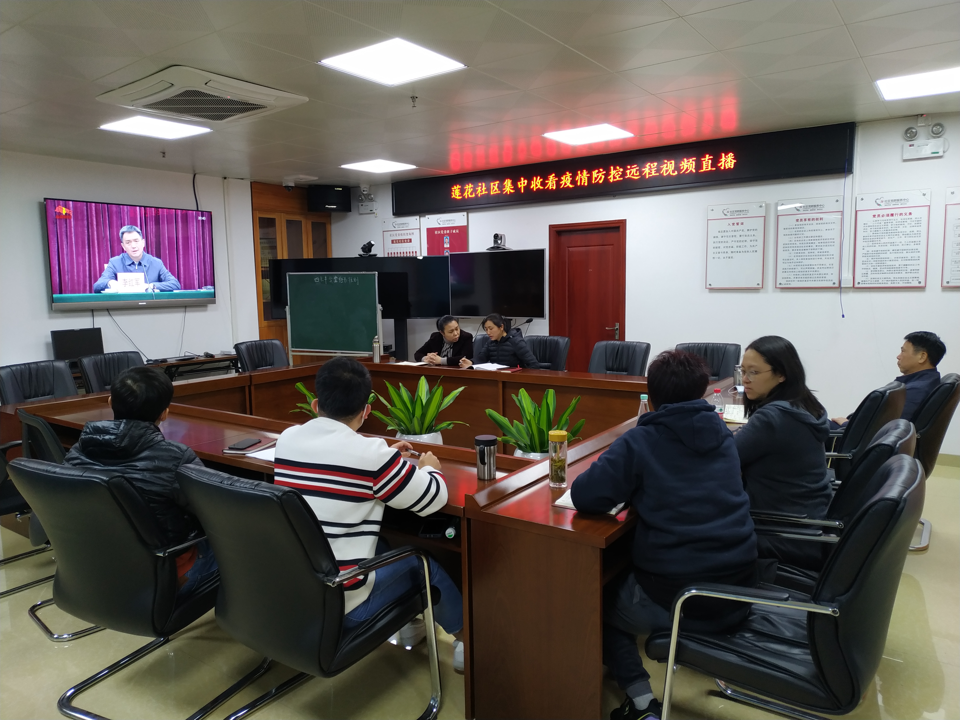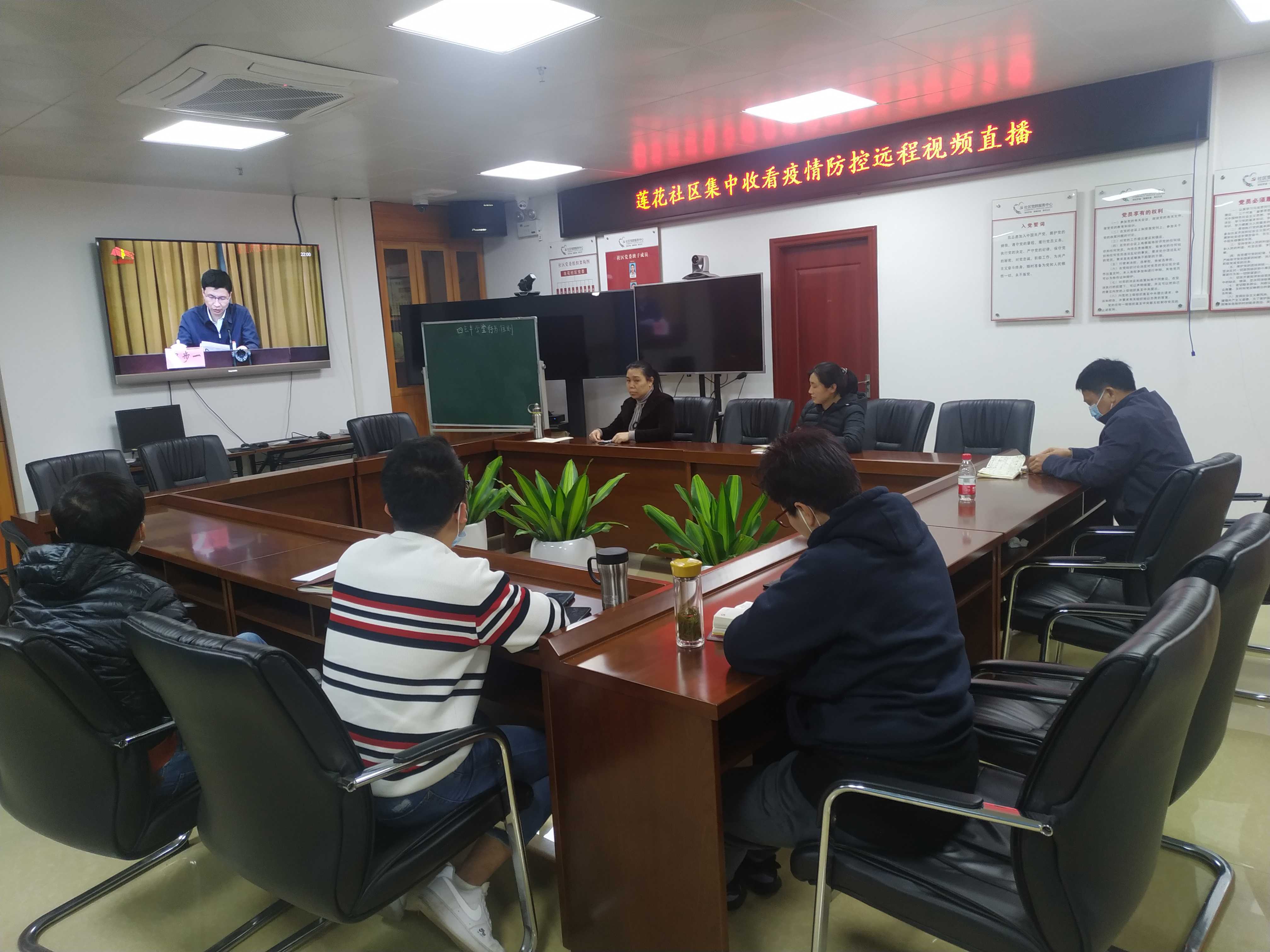 为强化疫情防控风险意识,坚决打赢顶级疫情防控攻坚战,维护好两委换届期间疫情防控安全,2021年1月14日晚,莲花社区组织两委成员集中收看疫情防控远程视频直播。