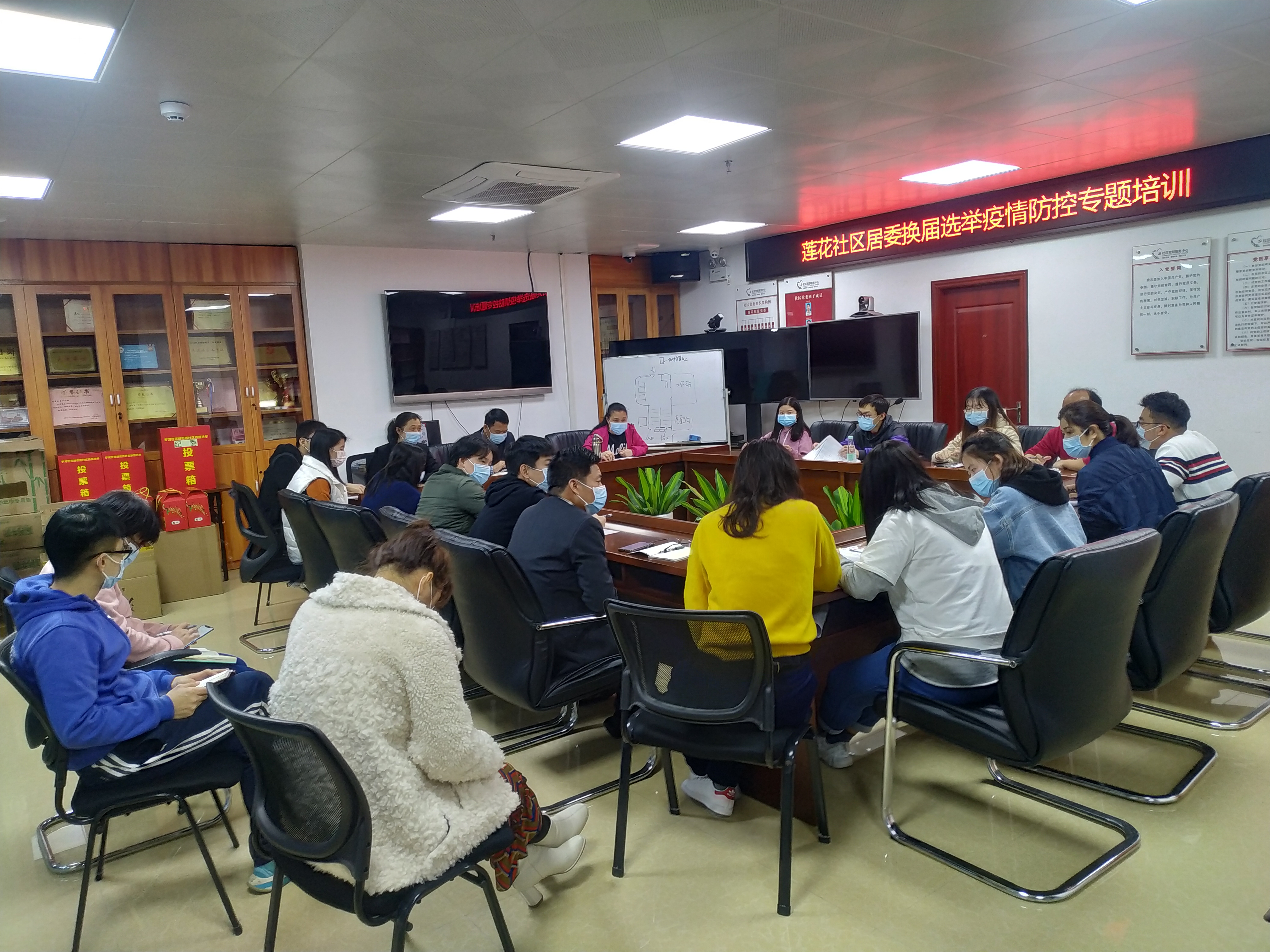 为全面落实“外防输入、内防反弹”的总体防控,严防常态化下疫情在重大活动内传播,保障人民群众的身体健康和生命安全,2021年1月20日下午,莲花社区组织全体工作人员召开居委换届选举疫情防控专题培训。