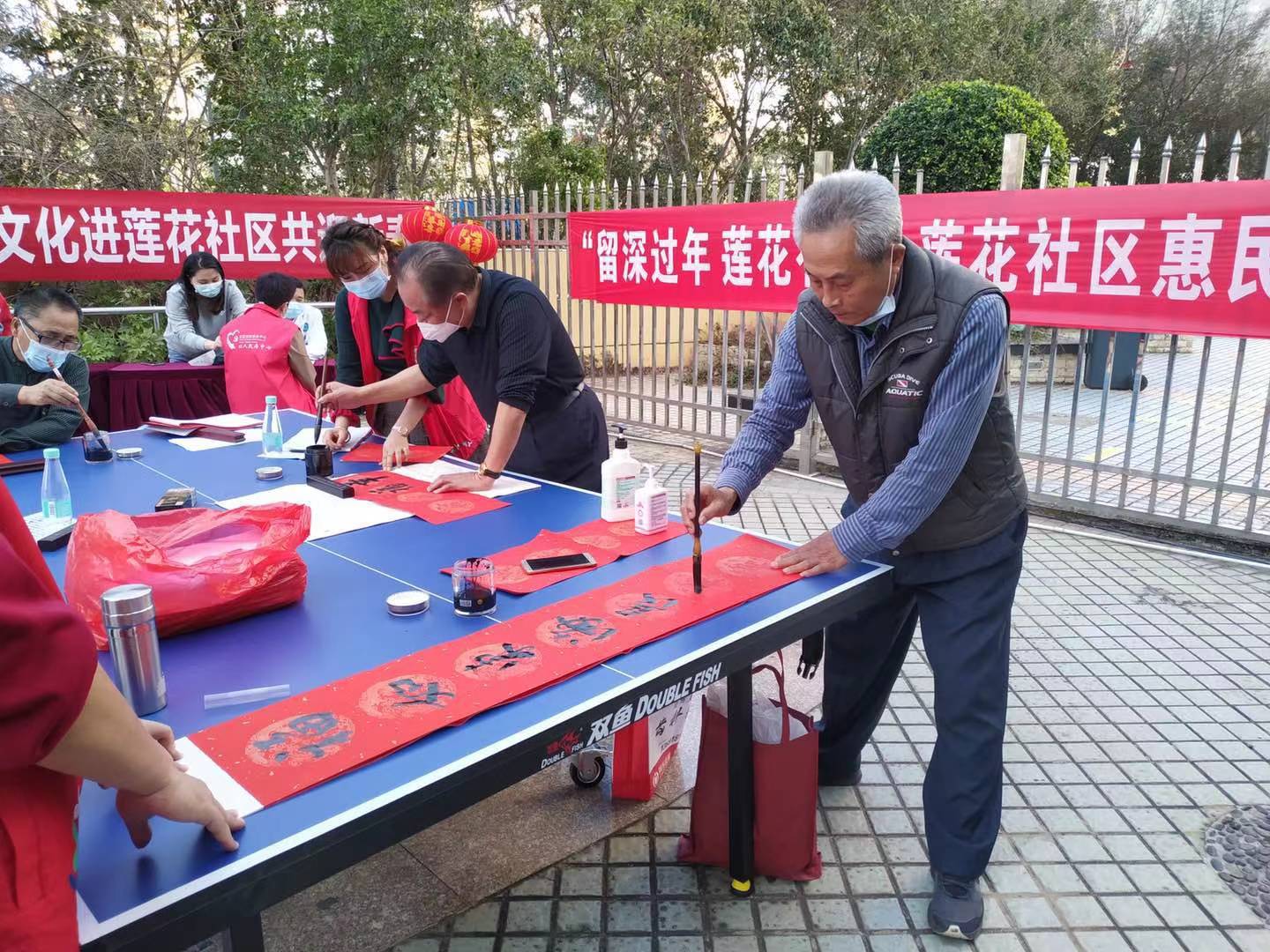 玉鼠报喜辞旧岁,金牛纳福迎春来,为丰富社区居民群众文化生活,营造温馨祥和的节日氛围,引导社区居民安心留深过年,2月3日下午,莲花社区开展迎新春赠春联、手工灯笼DIY志愿活动。