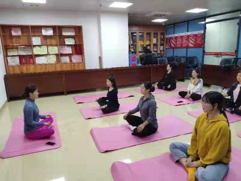 瑜伽作为一种传统与时尚相结合的运动,不仅能锻炼身体,还可以调节身心,缓解焦虑的情绪,是非常适合女性的运动选择。伴随着舒缓的音乐,在赖老师的带领下,她们保持着平稳的呼吸和平和的心态,利用瑜伽的轻柔与力量放松着身体,促进全身血液循环,缓解了工作疲劳。