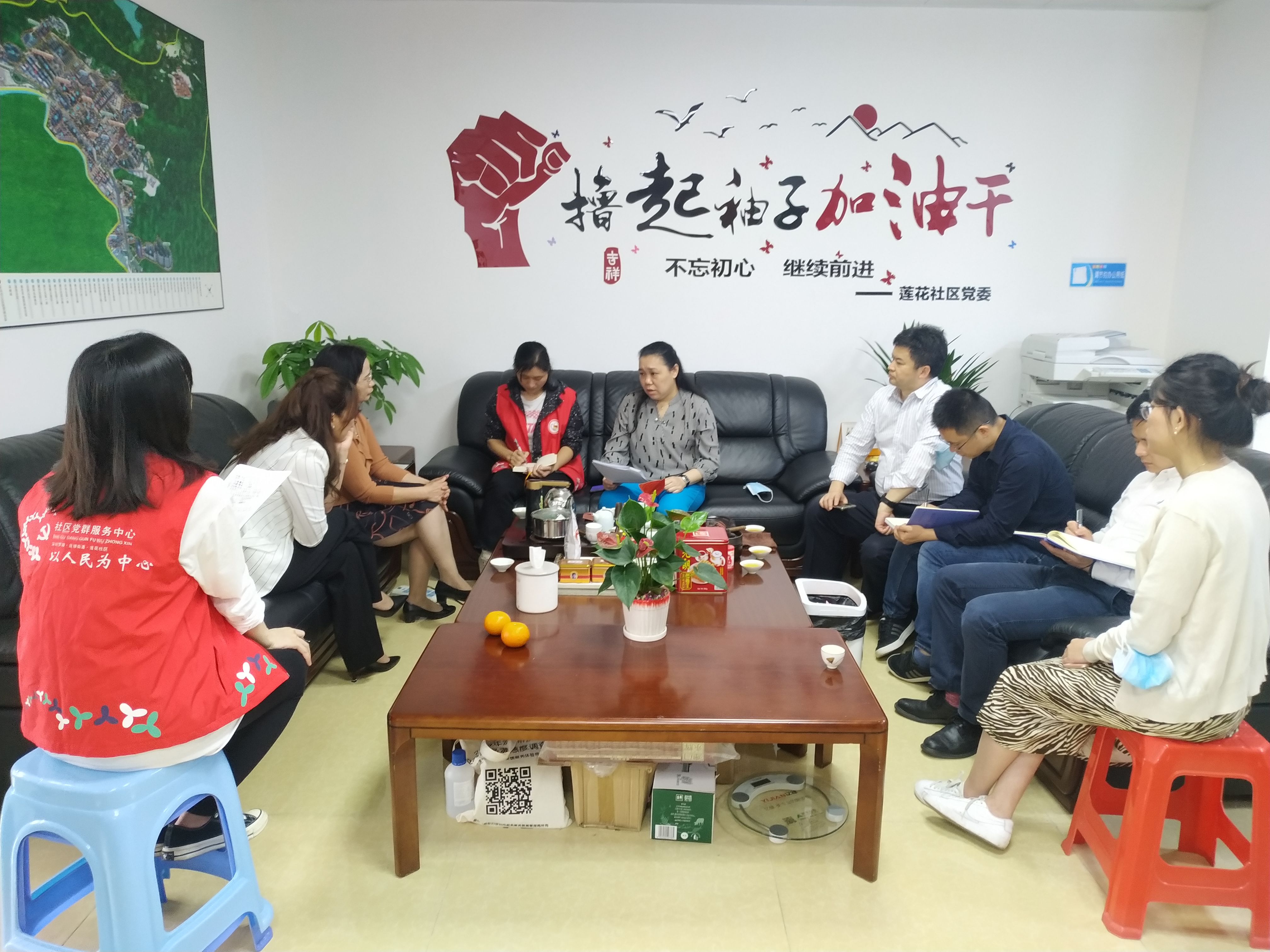 2021年3月18日上午,区妇联副主席胡桂英一行到莲花社区调研指导社区妇联工作。莲塘街道妇联主席麦丽梅及莲花社区党委书记陈建怡陪同调研。