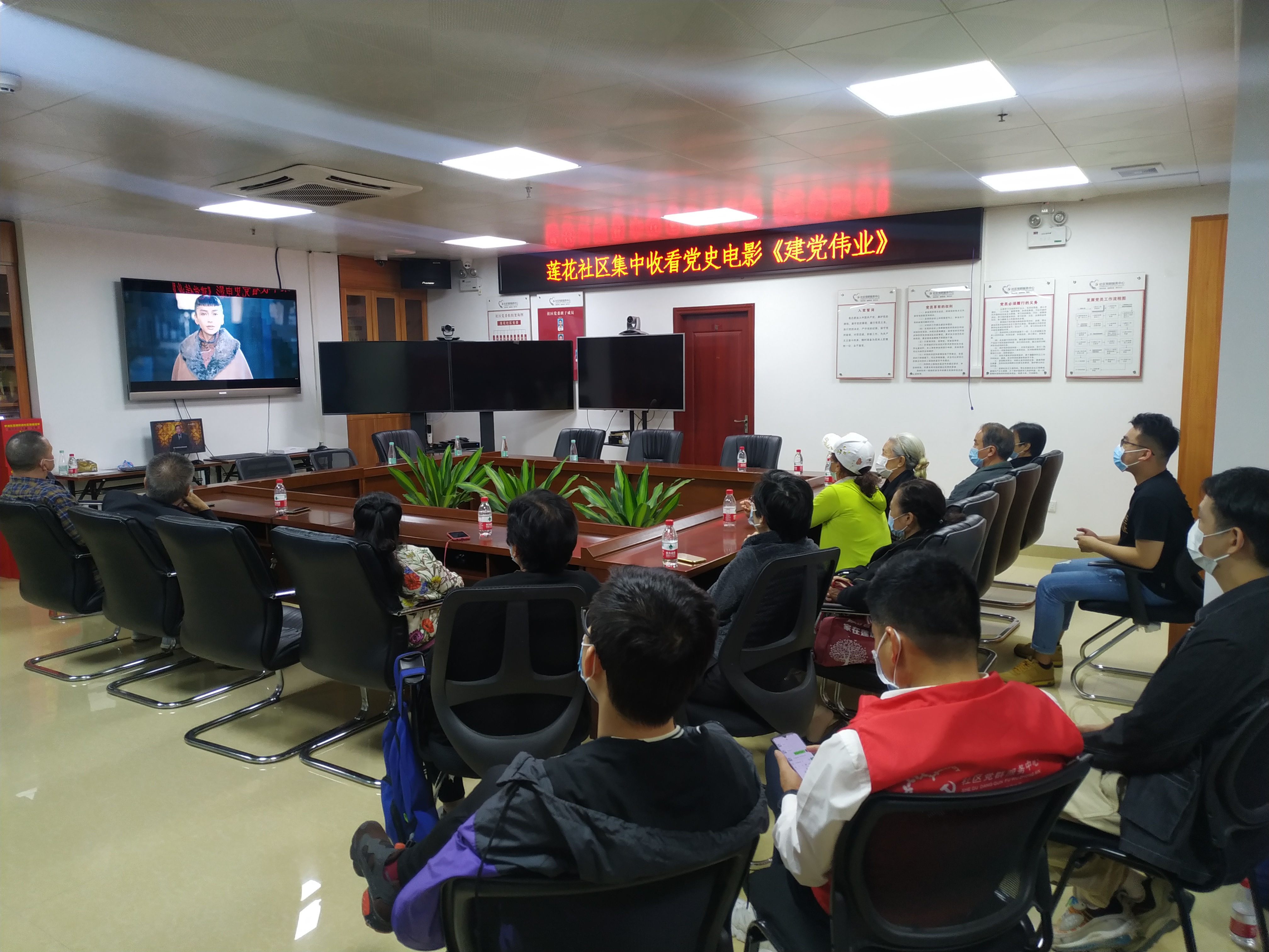 为庆祝建党100周年,增强党员群众党性意识,2021年3月24日下午,莲花社区组织党员群众在新时代大讲堂集中观看电影《建党伟业》,一起回顾党的光辉历程。