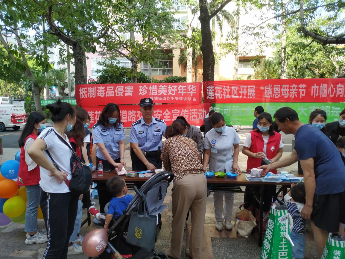 进一步提高广大社区群众道路交通安全意识、遵法守法和文明出行意识,预防和遏制道路交通事故的发生,营造良好的道路交通环境,2021年5月8日莲花社区工作站联合莲塘派出所开展道路交通安全宣传活动。