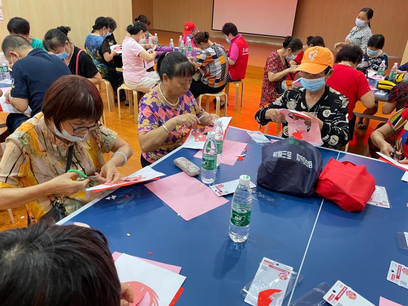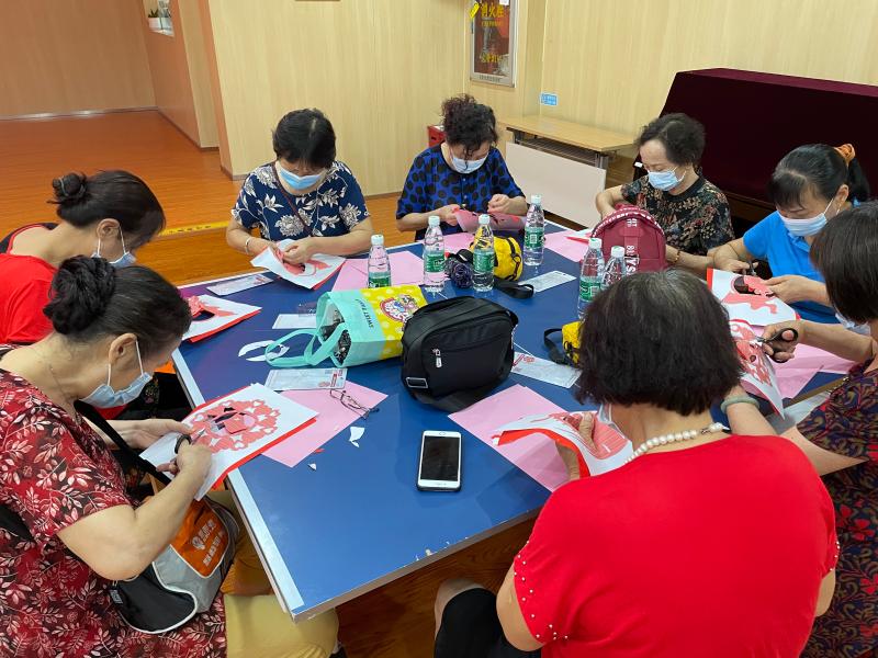 活动请来中国非物质文化遗产传承人吴老师为辖区居民授课,通过“活态传承“方式,加入党的元素进行优化创新,融入剪纸技艺作品中。这不仅让辖区居民共享非遗保护成果,感受中华优秀传统文化的魅力和风采,更凝聚辖区居民对祖国建党100周年的祝福。