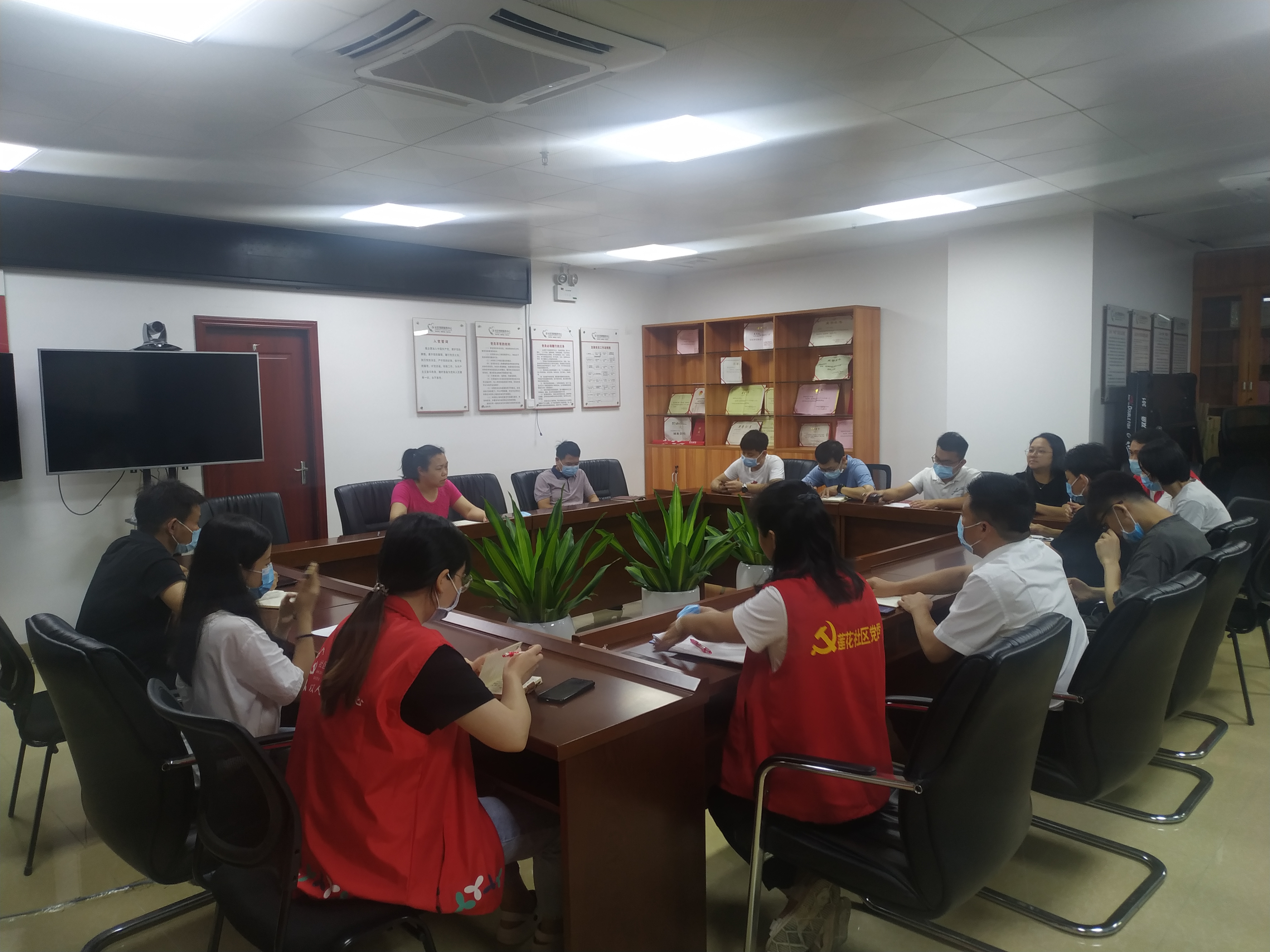 为全力做好核酸检测工作,确保辖区居民生命财产安全,守住疫情防控底线,2021年6月2日上午,莲花社区召开疫情防控会议,全体工作人员出席会议,
