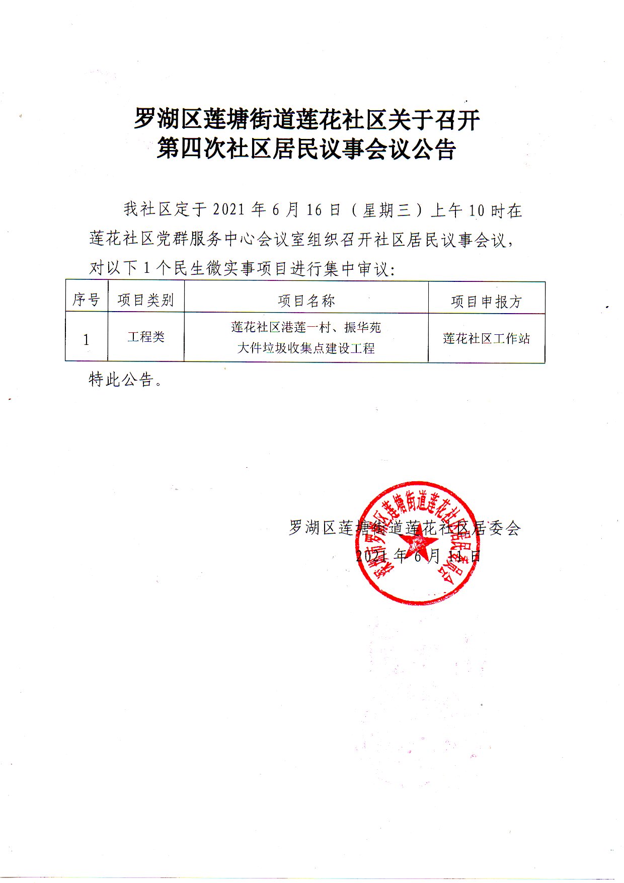 莲花社区关于召开第四次社区居民议事会会议公告