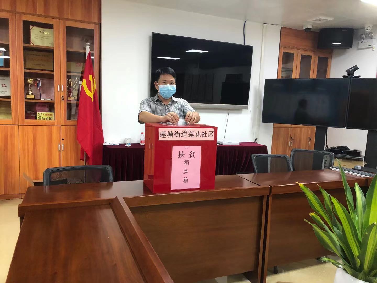 为弘扬中华民族扶危济困、扶弱助贫的传统美德,助力全面打赢脱贫攻坚战,2021年7月2日上午,莲花社区组织工作站人员为广东贫困地区捐款。