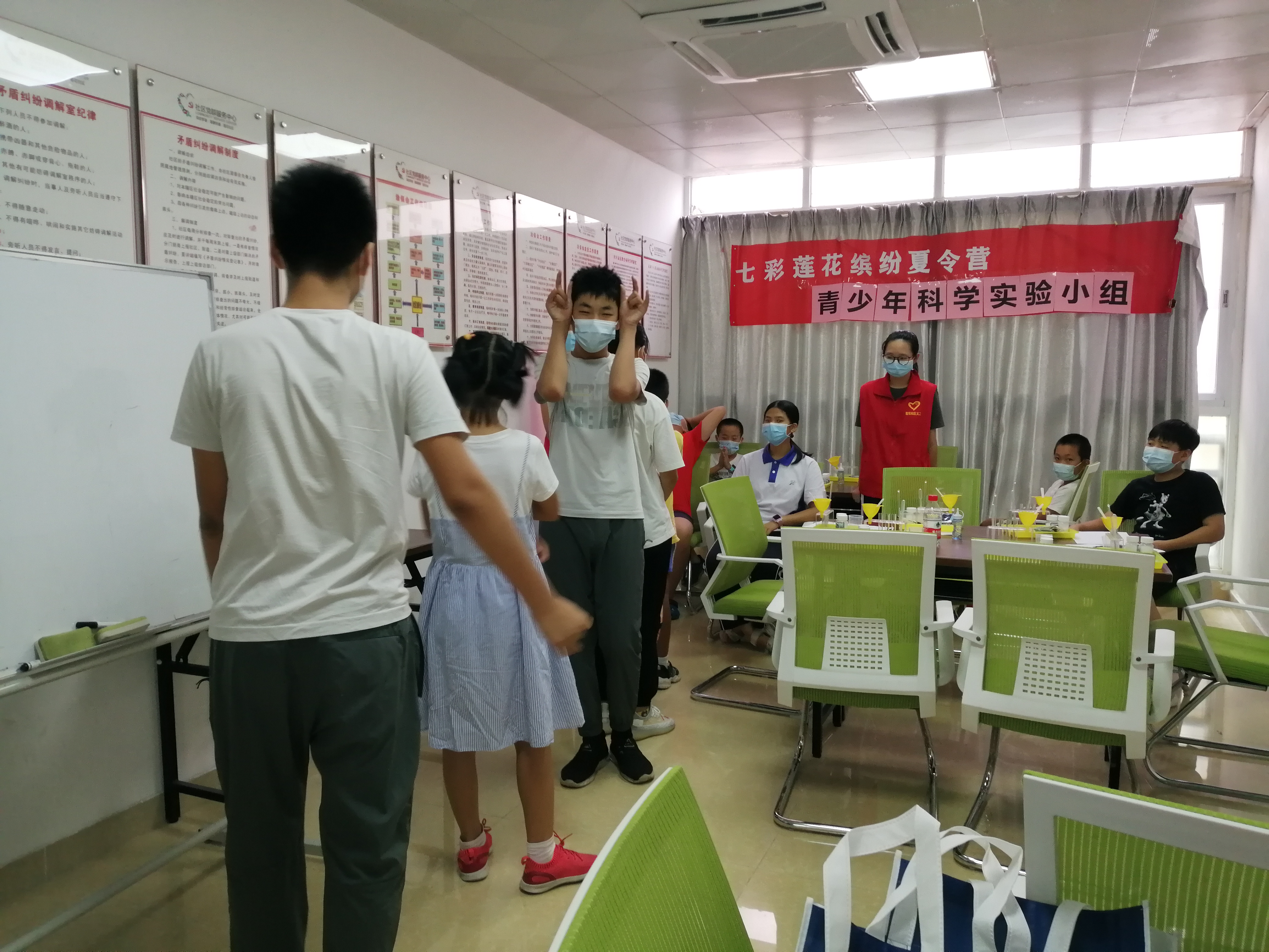 8月25日上午,莲花社区党群服务中心组织的青少年科学实验小组在组员们欢快的笑声中开始了。社工组织组员们进行《传表情》小游戏,组员们分组排成一排,依次通过表情、动作向身后组员传递有关表情的成语,然后由最后一名组员猜测。当组员通过丰富的表情、滑稽的动作来展示成语含义时,生动有趣的表演惹得其他组员捧腹大笑,经过这个轻松的游戏环节过后,组员们一下拉近了彼此的距离。