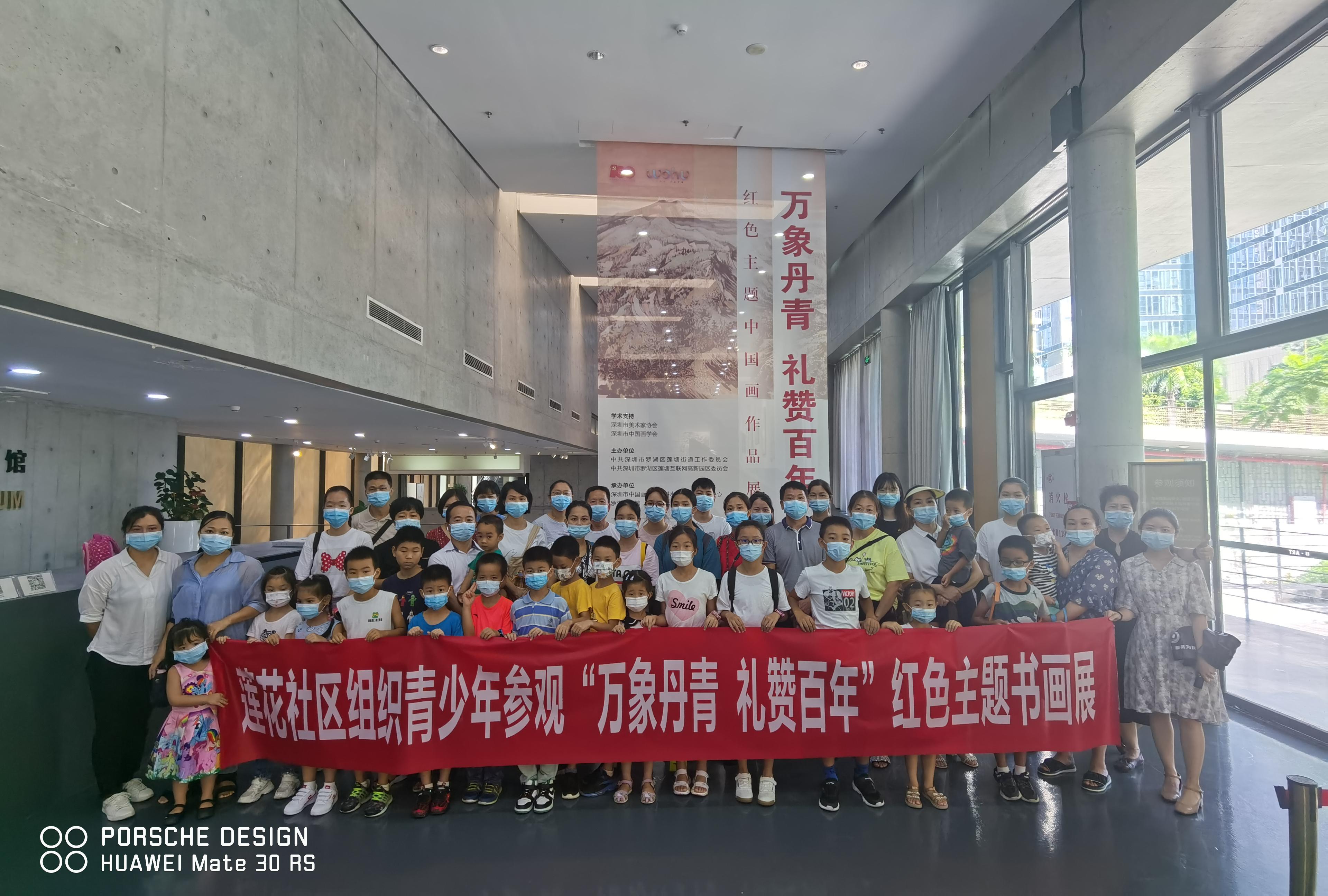 为丰富辖区青少年暑假文化生活,发挥社区教育优势,进一步加强未成年人思想道德建设,结合庆祝建党百年华诞和党史学习教育,2021年8月26日下午,莲花社区党委组织辖区青少年到罗湖美术馆参观“万象丹青礼赞百年”红色主题书画展,引导教育青少年加深对党史国史和改革开放史的认识和理解。