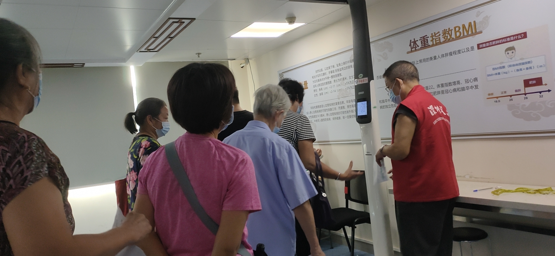 体检现场,社区工作人员有序引导居民进行签到登记,详细解答体检前后的注意事项,报告结果时间,预约接种疫苗等问题。随后,社康医生为居民进行了体检基础项目的免费检查,耐心讲解关于老年人身体保健方面的常识,同时科普了疫苗接种知识,消除了他们接种疫苗的顾虑,让他们认识到接种新冠肺炎疫苗的作用和益处。实现便民服务零距离,进一步密切群众关系。