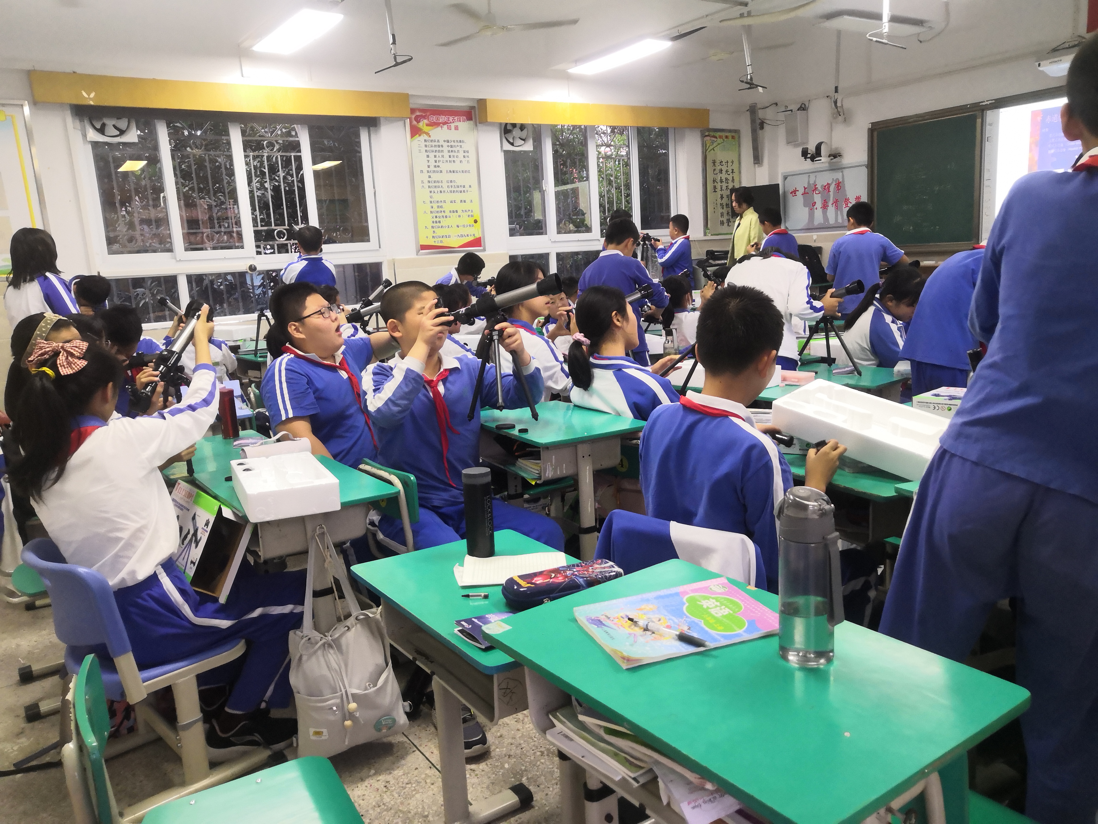 课堂上同学们勇跃发言,敢于提问,天马行空般的想法,得到了老师的表扬。组装模型的时候,同学们互相帮助,互相交流心得,在老师的指导下对天文望远镜的构造、调试有了全新的认识。