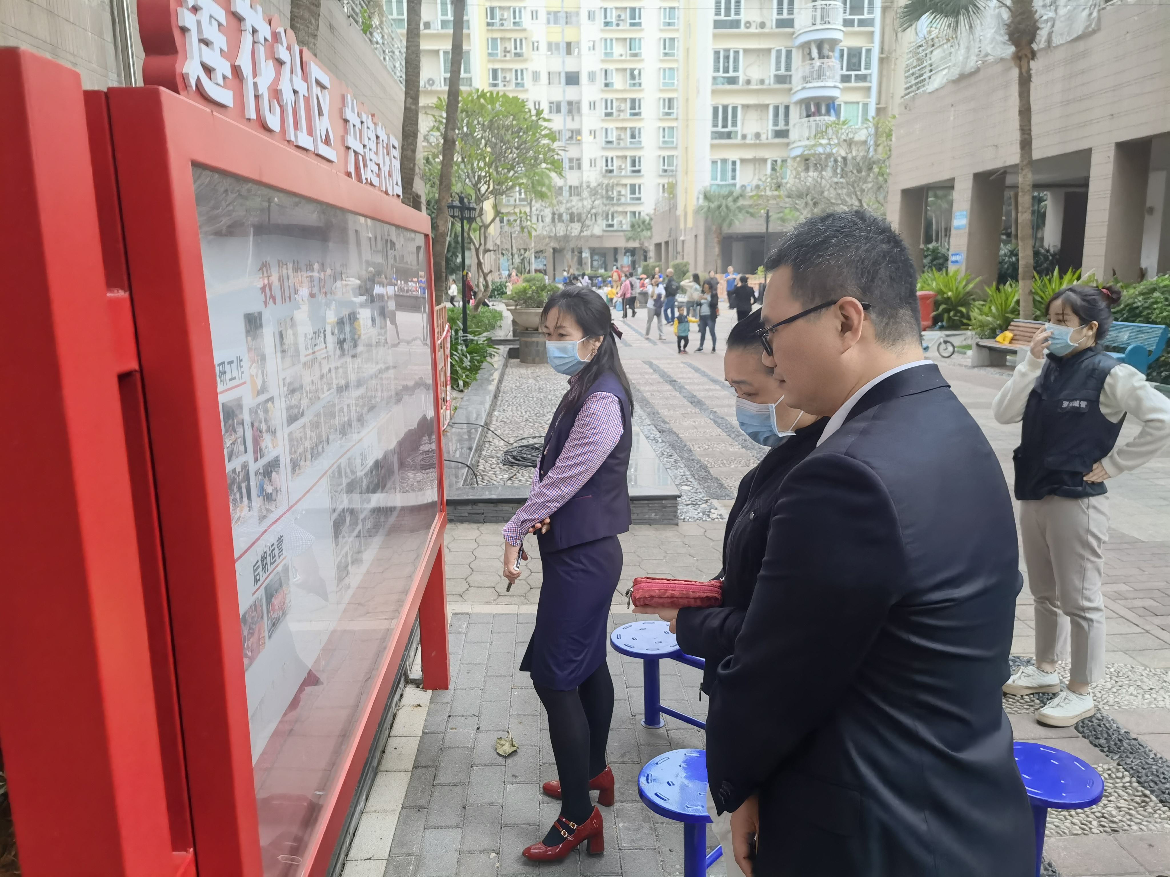 2021年12月14日下午,莲塘街道党工委委员、莲花社区第一书记陈晓艳率驻点团队深入社区开展创文专项整治行动,街道执法部门和莲花社区党委一齐动手,营造良好的卫生环境,共同参与整治行动。莲花社区党委书记陈建怡陪同督导。