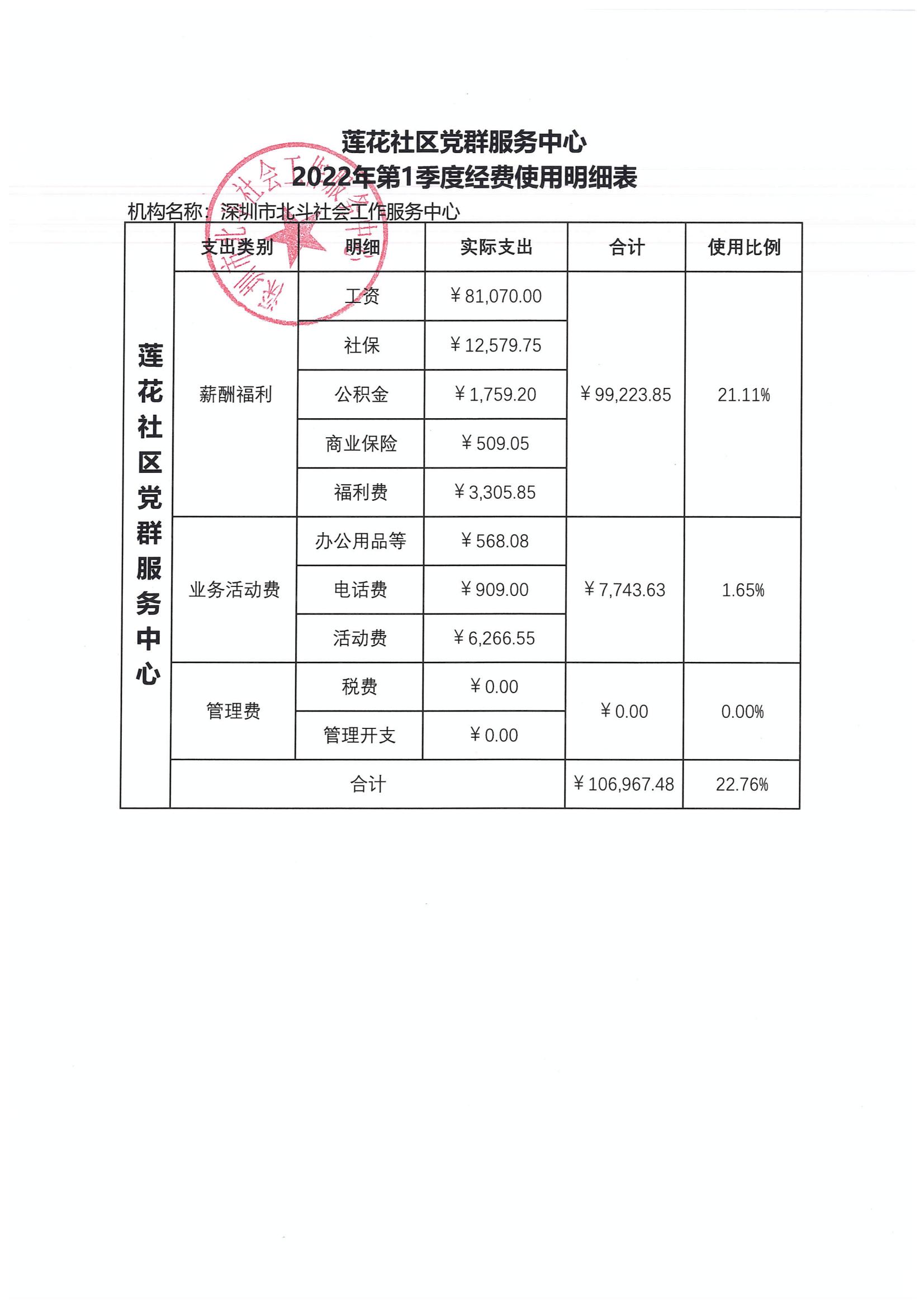 莲花社区党群服务中心2022年第一季度经费使用明细表