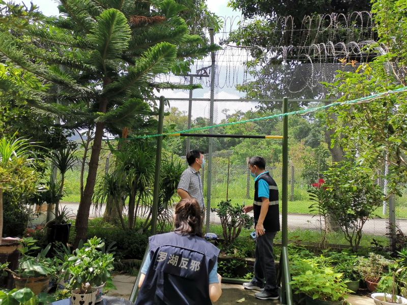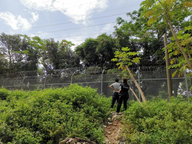 为加强疫情防控期防偷渡反走私工作,确保辖区社会安全稳定,2022年5月31日上午,莲塘街道维稳综治办联合莲花社区开展边境偷渡隐患排查,重点对莲花社区辖区的振华苑、莲城学校、七小工业区、港莲村等与香港接壤的边境线进行巡查检查。