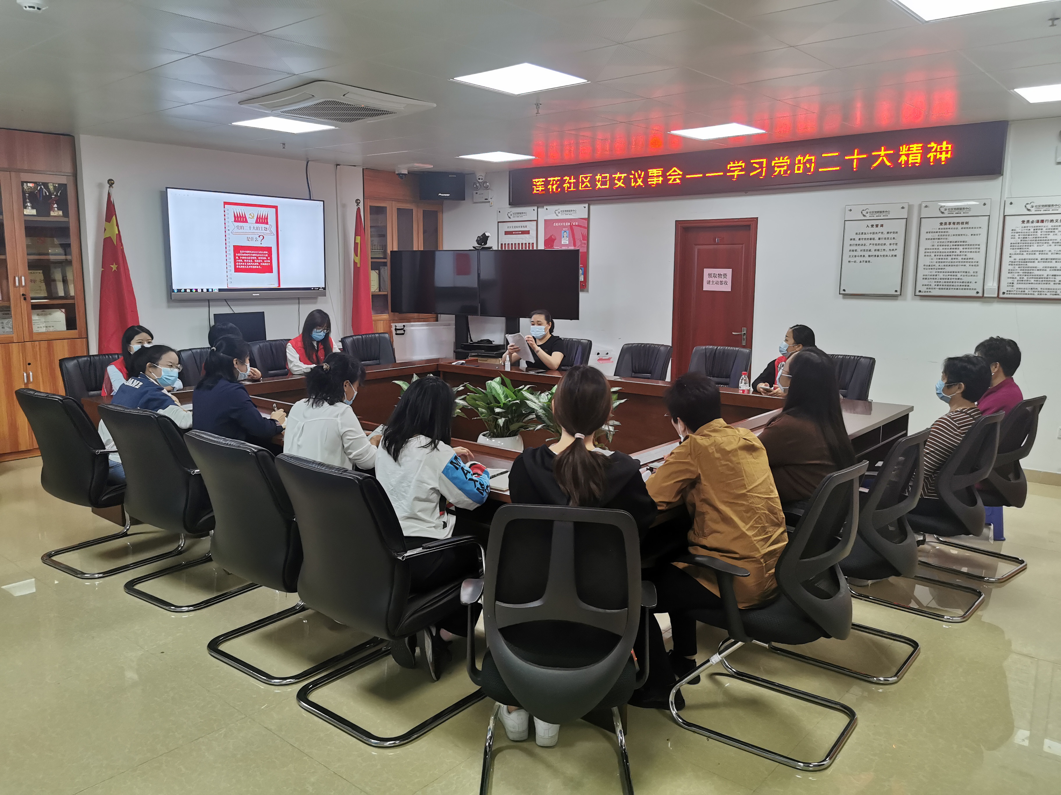 为进一步发挥妇女在社区治理中的作用,通过妇女议事会强化社区妇联的号召力和凝聚力,2022年11月1日上午,莲花社区组织召开妇女议事会,会议由莲花社区党委书记陈建怡主持,莲花社区工作站全体女职工及居民妇女代表参加会议。