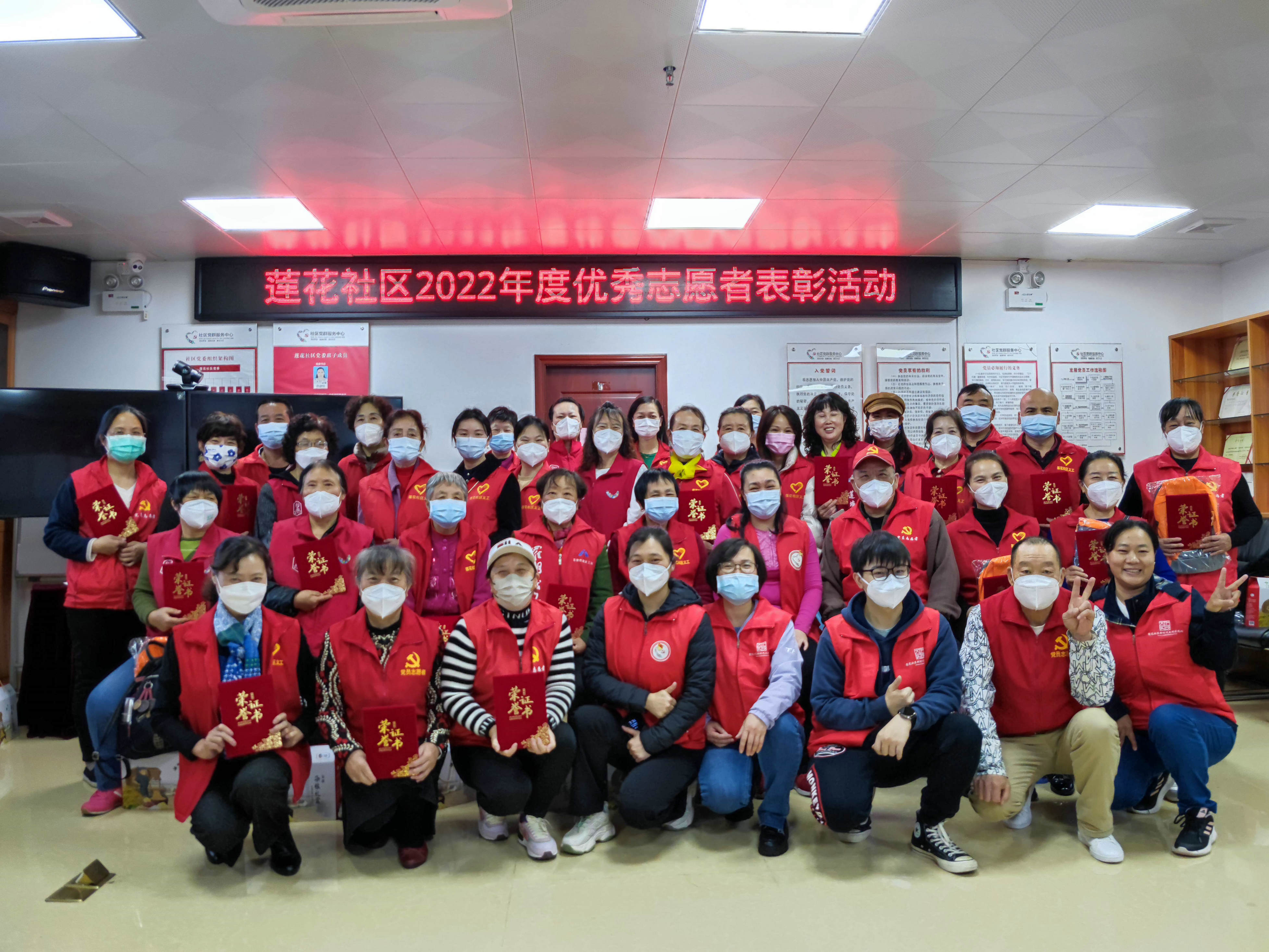 为进一步弘扬奉献、友爱、互助、进步的志愿者精神,增进社区志愿者之间的交流互动, 肯定,褒扬社区优秀志愿者的付出,2023年1月11日下午在莲花社区党委的领导下,莲花社区居委会、莲花社区党群服务中心、莲花社区新时代文明实践站联合开展2022年度优秀志愿者表彰活动。活动邀请社区50名优秀志愿者参加。
