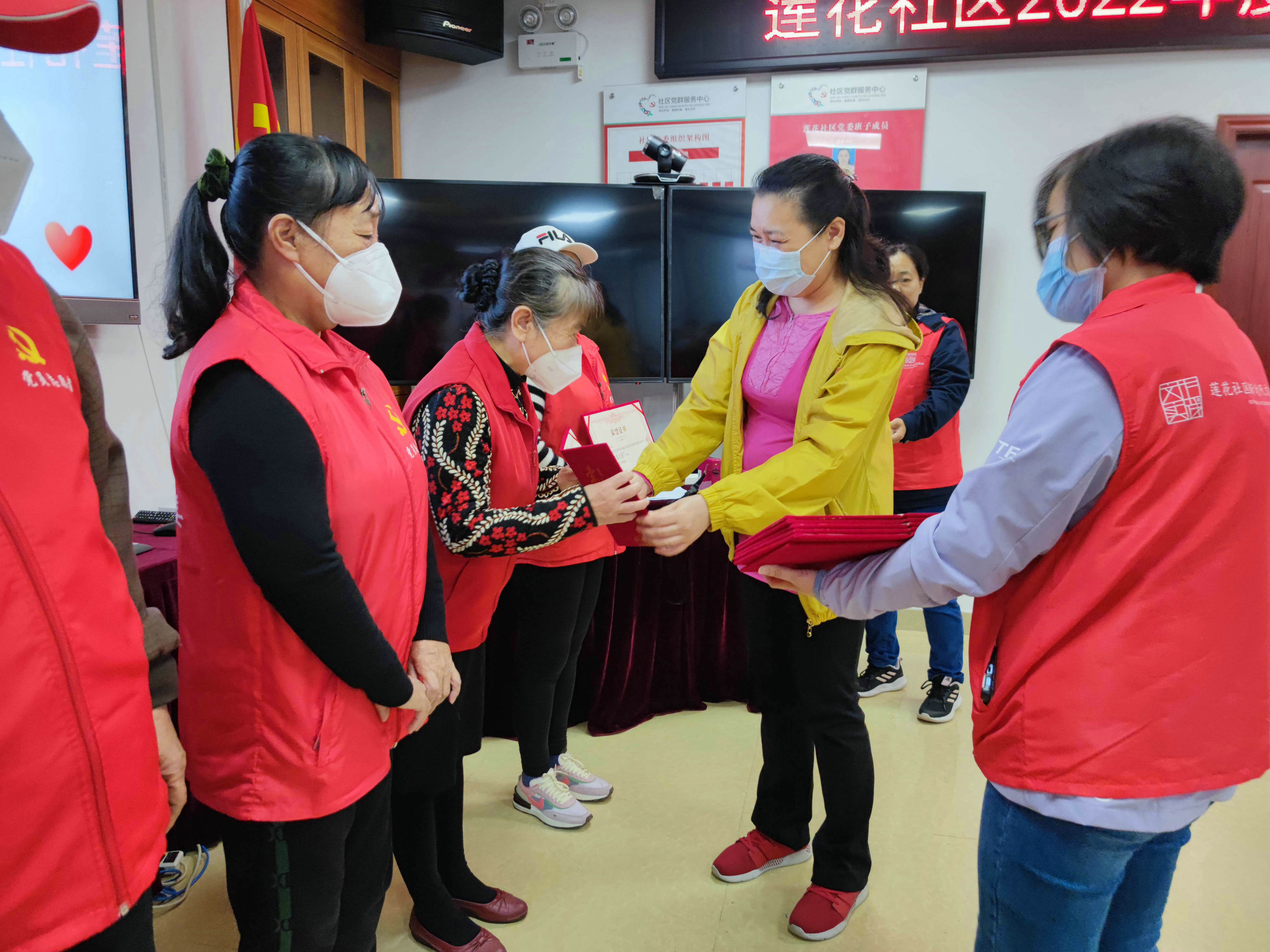 活动开始,莲花社区党委书记陈建怡向志愿者们一年以来对社区工作的大力支持;对社区居民的无私奉献表示真诚的感谢和崇高的敬意。同时希望我们的优秀志愿者们引领莲花社区志愿者队伍砥砺前行,再创佳绩!