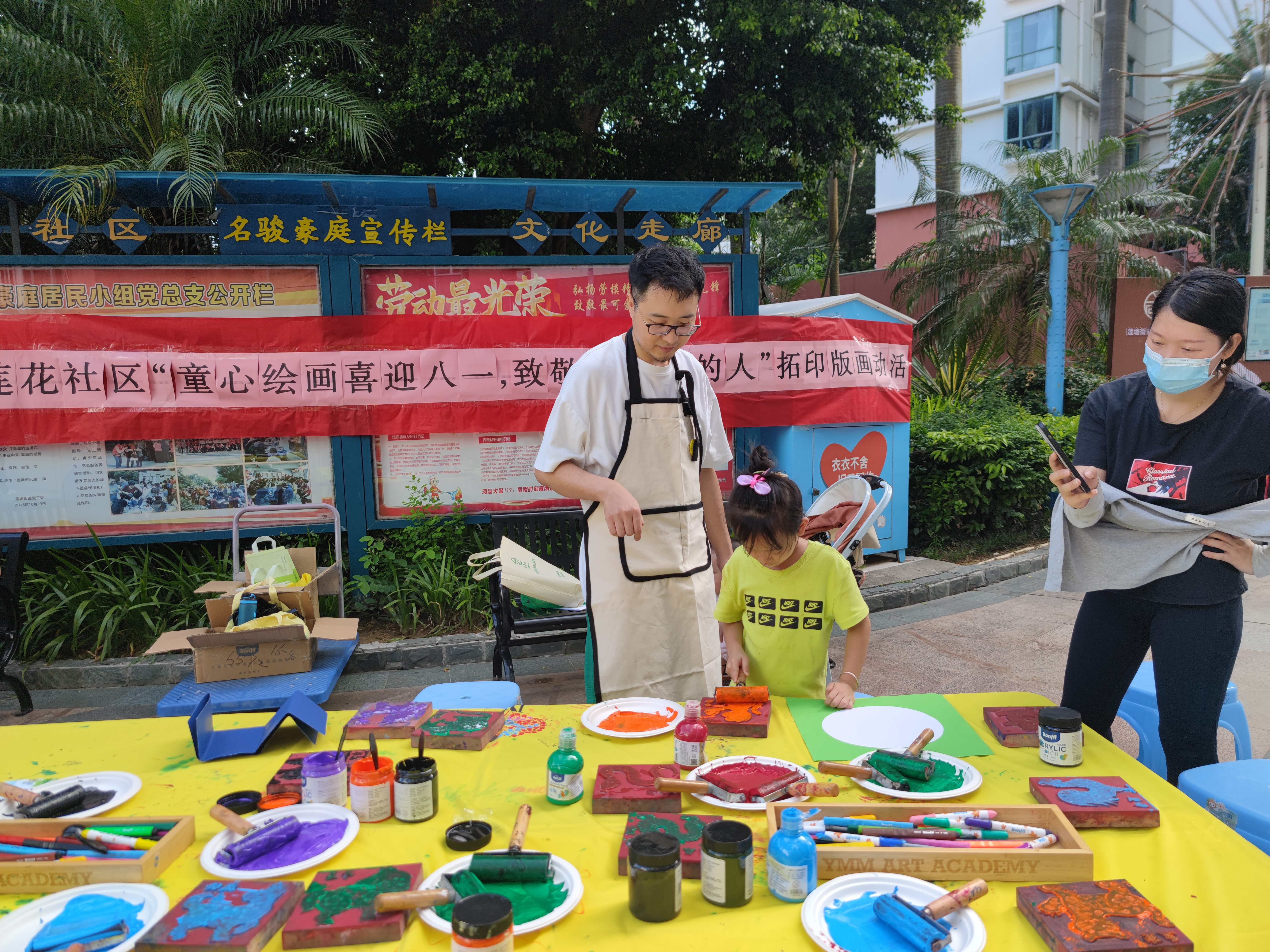 莲花社区开展“童心绘画喜迎八一,致敬最可爱的人”拓印版画活动