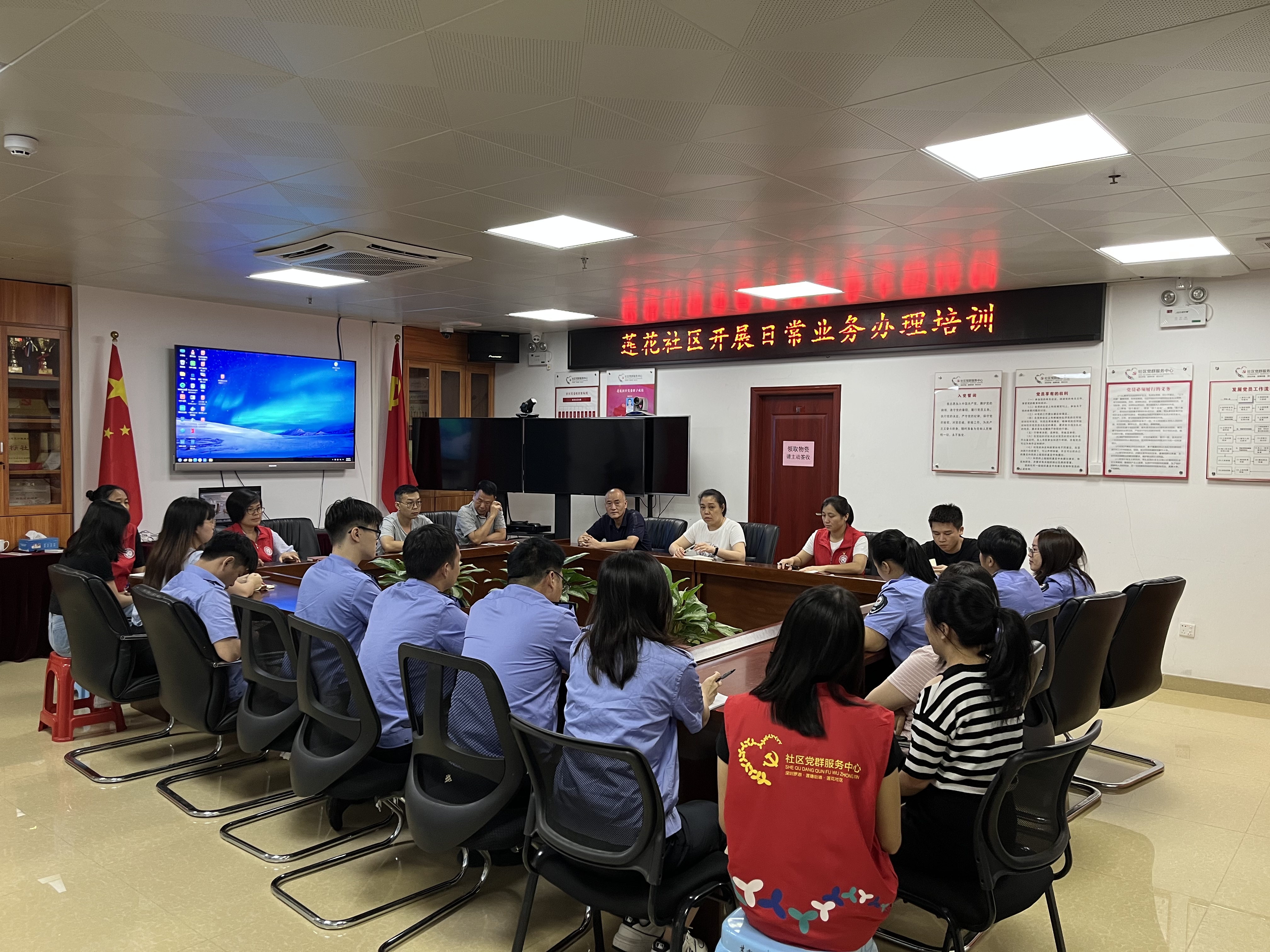 为提高社区党群服务中心延时服务水平,规范日常工作业务流程,切实落实为群众办实事宗旨,2023年8月7日下午,莲花社区组织全体工作人员开展日常业务办理培训。