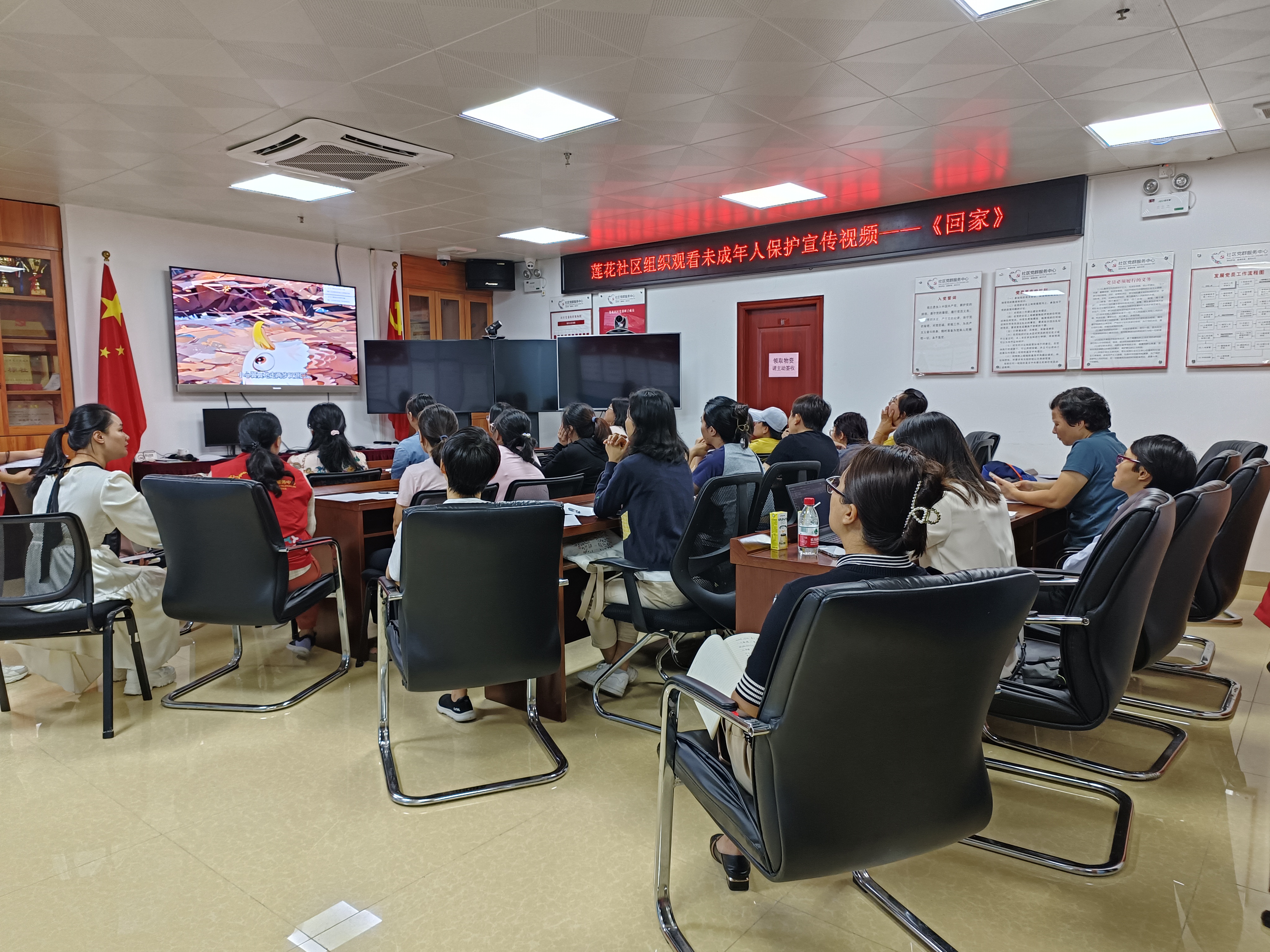 为提升辖区居民对未成年人的保护意识,营造平安和谐的社区环境,2023年11月9日上午,莲花社区以家庭教育学习营活动为契机,开展未成年人保护宣传活动,组织居民观看微电影《回家》。