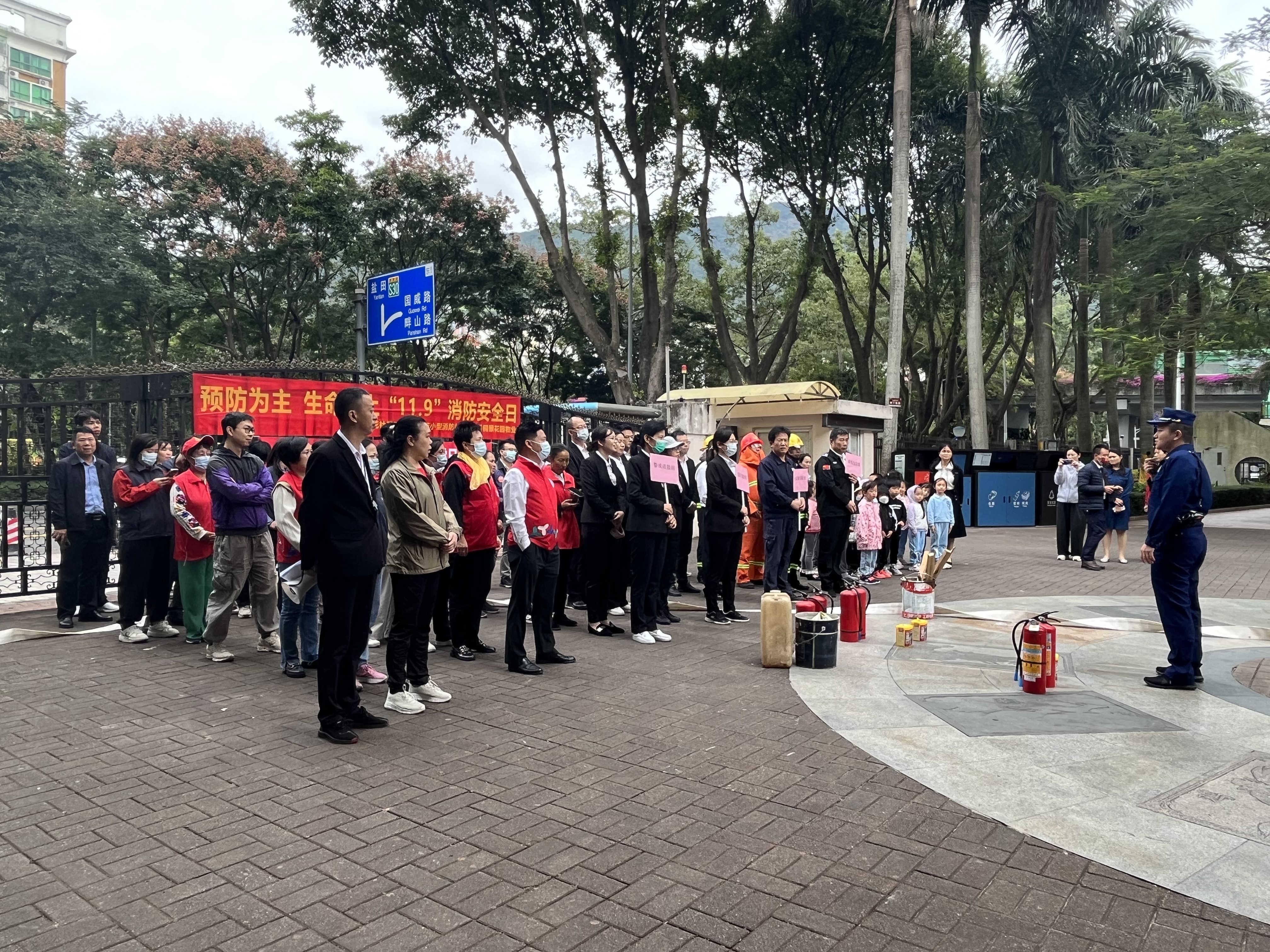 为切实推进平安社区建设,加强高层住宅小区消防安全管理,预防火灾和减少火灾危害,提高居民的消防意识和应对火灾突发事件的处置能力,确保居民群众生命财产安全,2023年11月16日下午,莲花社区联合莲花小型消防站、莲花社康、桐景幼儿园、桐景花园党支部、彩生活桐景花园物业在桐景花园小区广场举办“预防为主,生命至上”为主题的消防应急疏散实战演习。