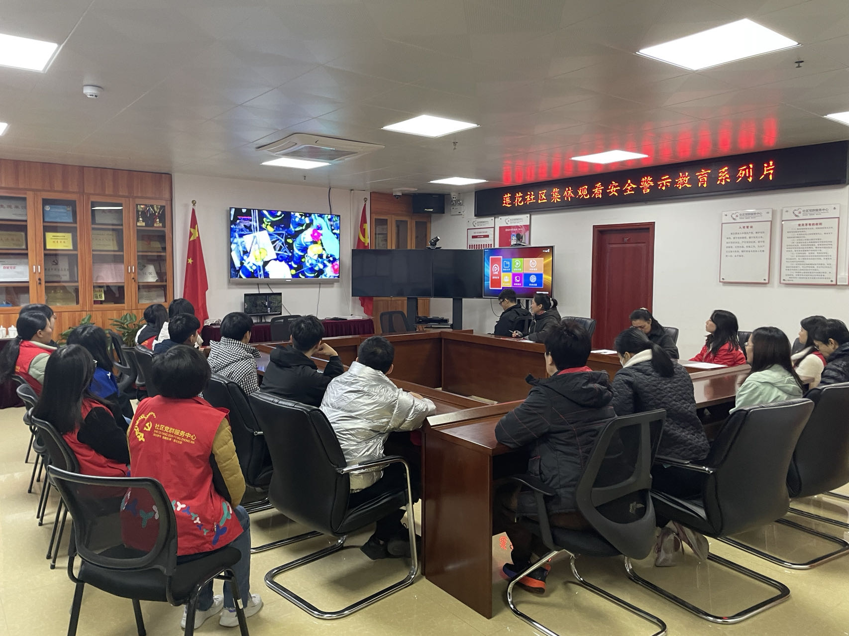 为严格落实提升群防群治水平,深刻吸取事故教训,增强安全防范意识,强化安全生产宣传教育,2023年12月20日下午,莲花社区组织观看安全生产警示教育片。