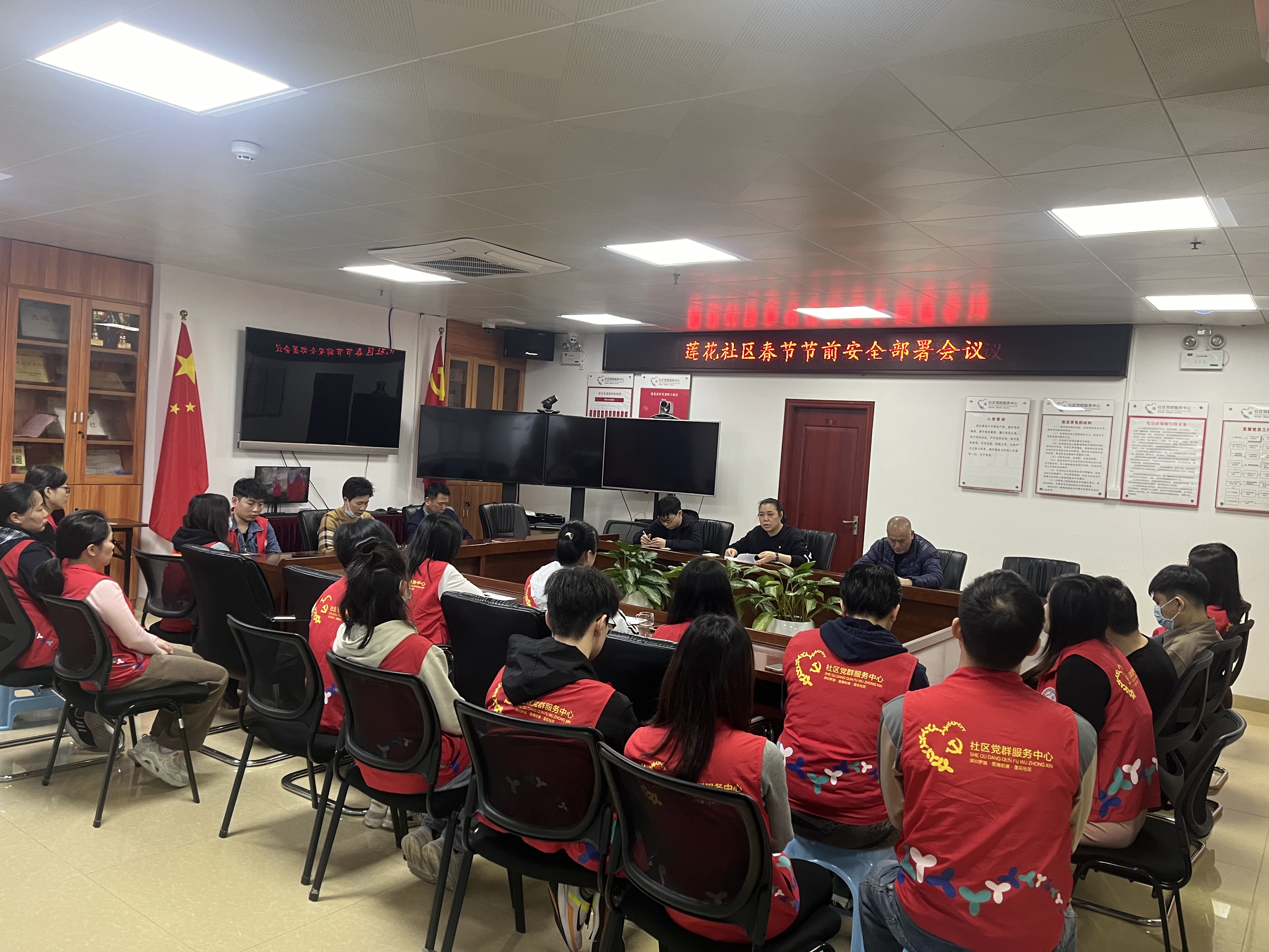 为做好2024年春节前安全防范工作,严防各类事故发生,保障辖区居民群众欢乐度节日,2024年2月1日下午,莲花社区组织全体工作人员召开春节前安全工作部署会。