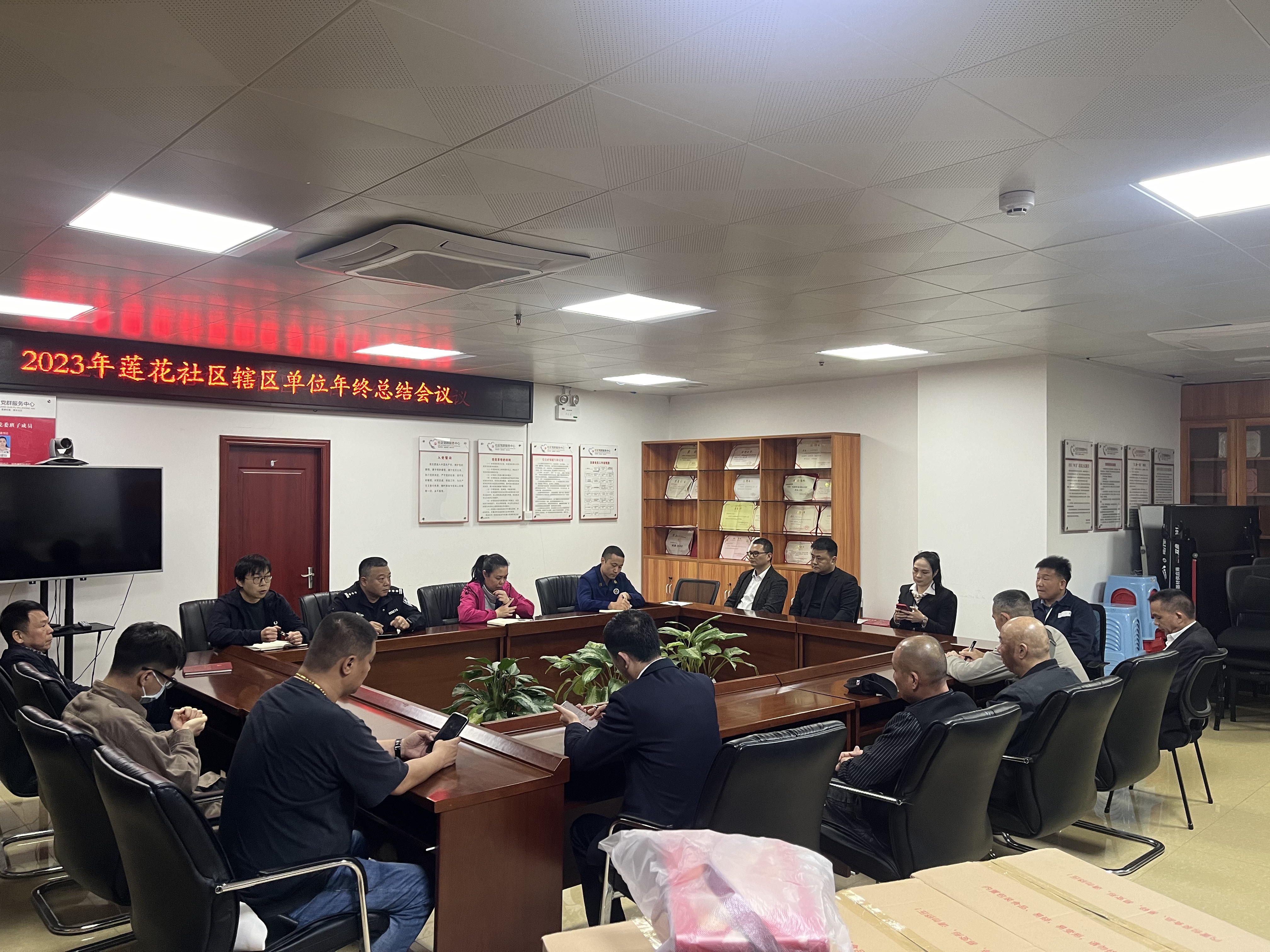 2024年2月1日,莲花社区组织辖区企事业单位召开2023年年终总结会议,会议由莲花社区党委书记陈建怡主持,莲花小型消防站、辖区民警、辖区物业等单位参加本次会议。