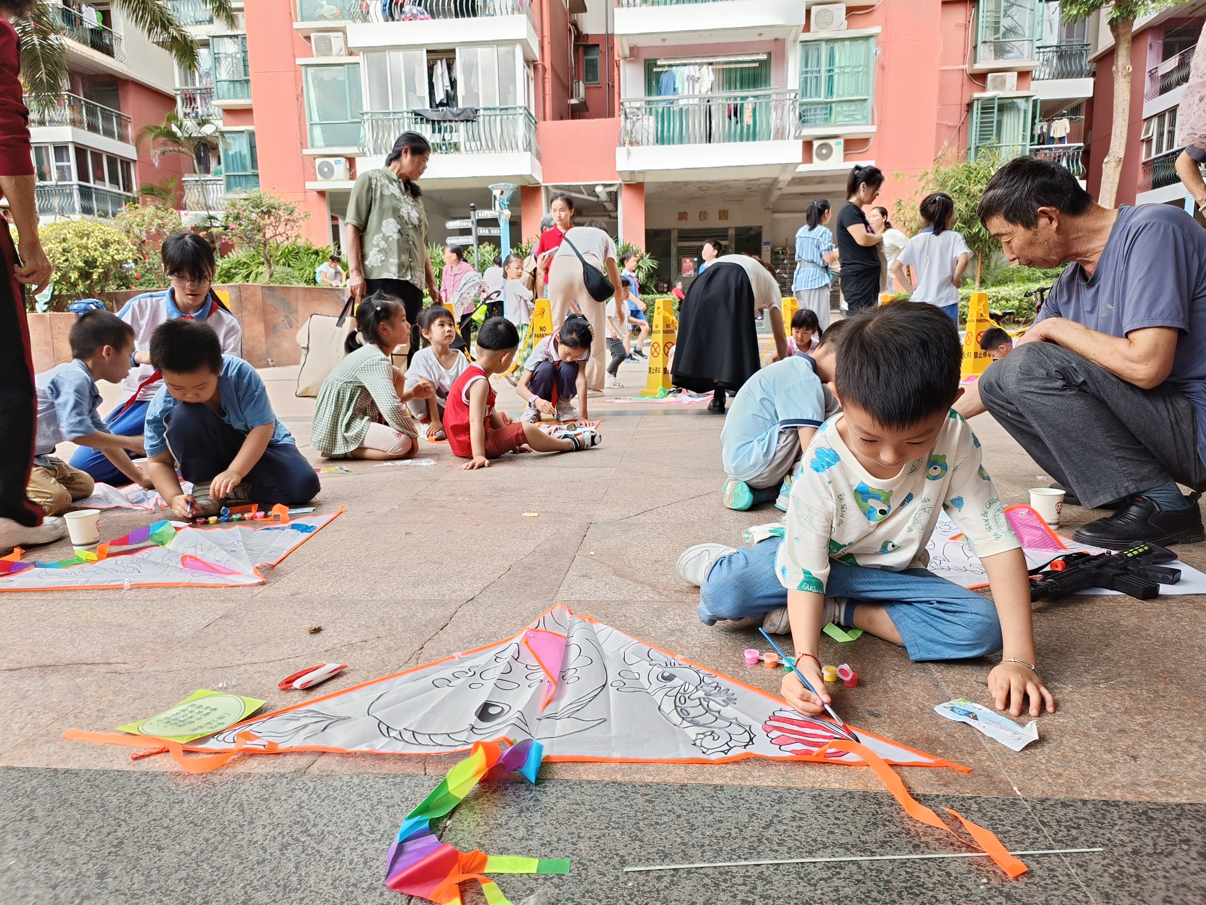 随后,活动进入了精彩的互动环节。在老师的带领下,小朋友们齐声诵读清明诗词,声音洪亮,情感真挚,表达了对先人的无尽思念。紧接着,亲子们一同参与了画风筝的动手环节。孩子们发挥想象力,用五彩斑斓的画笔在风筝上绘制出各式各样的图案,寄托着对先辈的思念和对美好生活的向往。