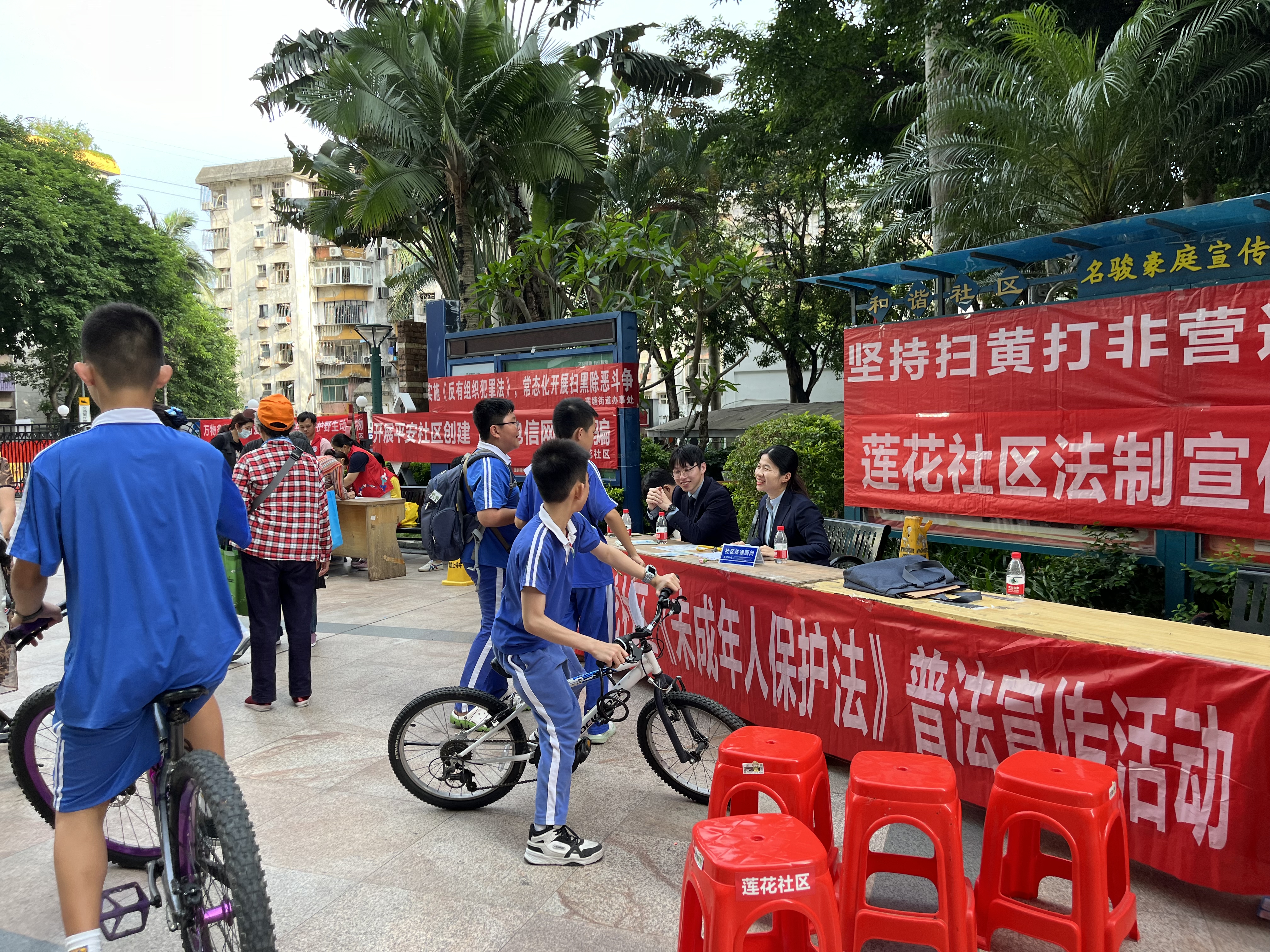 为进一步弘扬法治精神,提高辖区妇女和儿童青少年法治意识,2024年5月11日下午,莲花社区联合社区驻点法律顾问、辖区民警开展未成年人思想道德教育、妇女维权等法治宣传,增强妇女维权意识,营造关爱妇女的社会氛围。