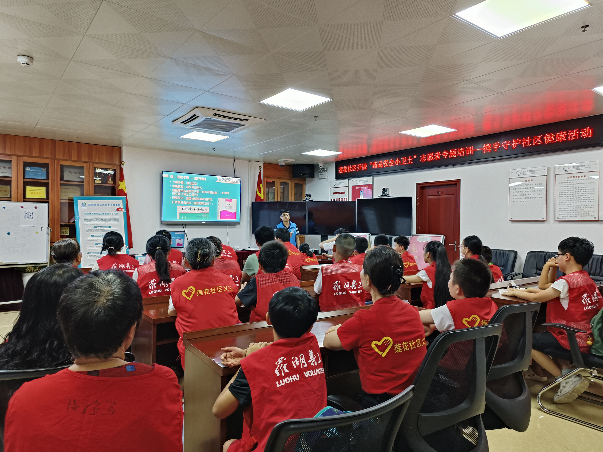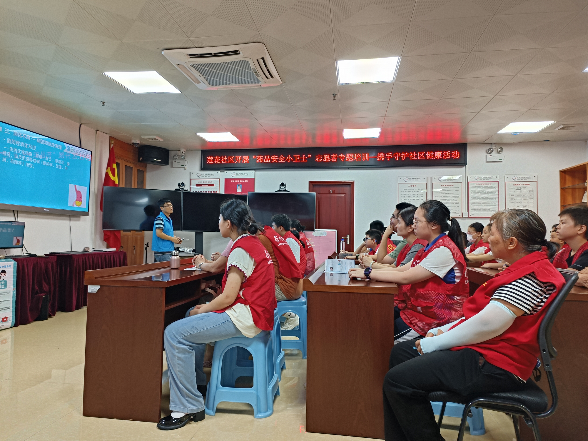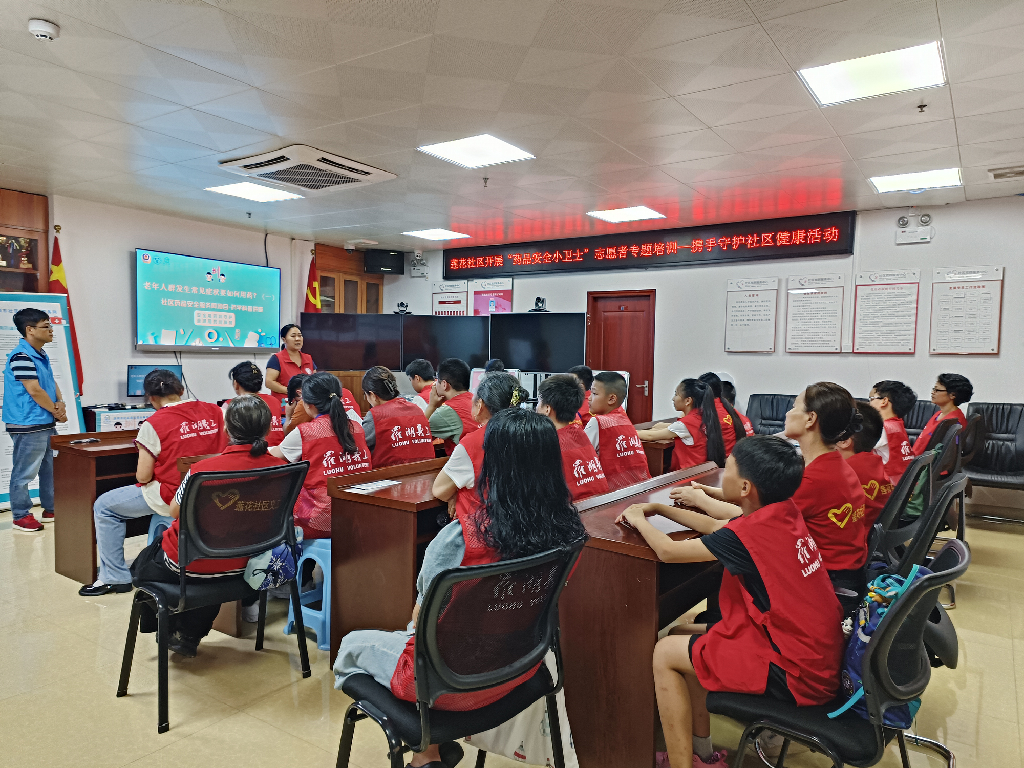继首场“药安守护,情暖长者”药品安全知识专题培训取得热烈反响后,莲花社区党群服务中心携手广东深圳医药职业技能培训中心,于2024年7月26日下午成功举办了第二场专题培训。本次培训以“老年人群发生常见症状如何用药”为主题,旨在深度强化社区志愿者队伍的专业素养,确保他们在日常关怀中能为高龄独居老人提供更加贴心、科学的用药指导服务。