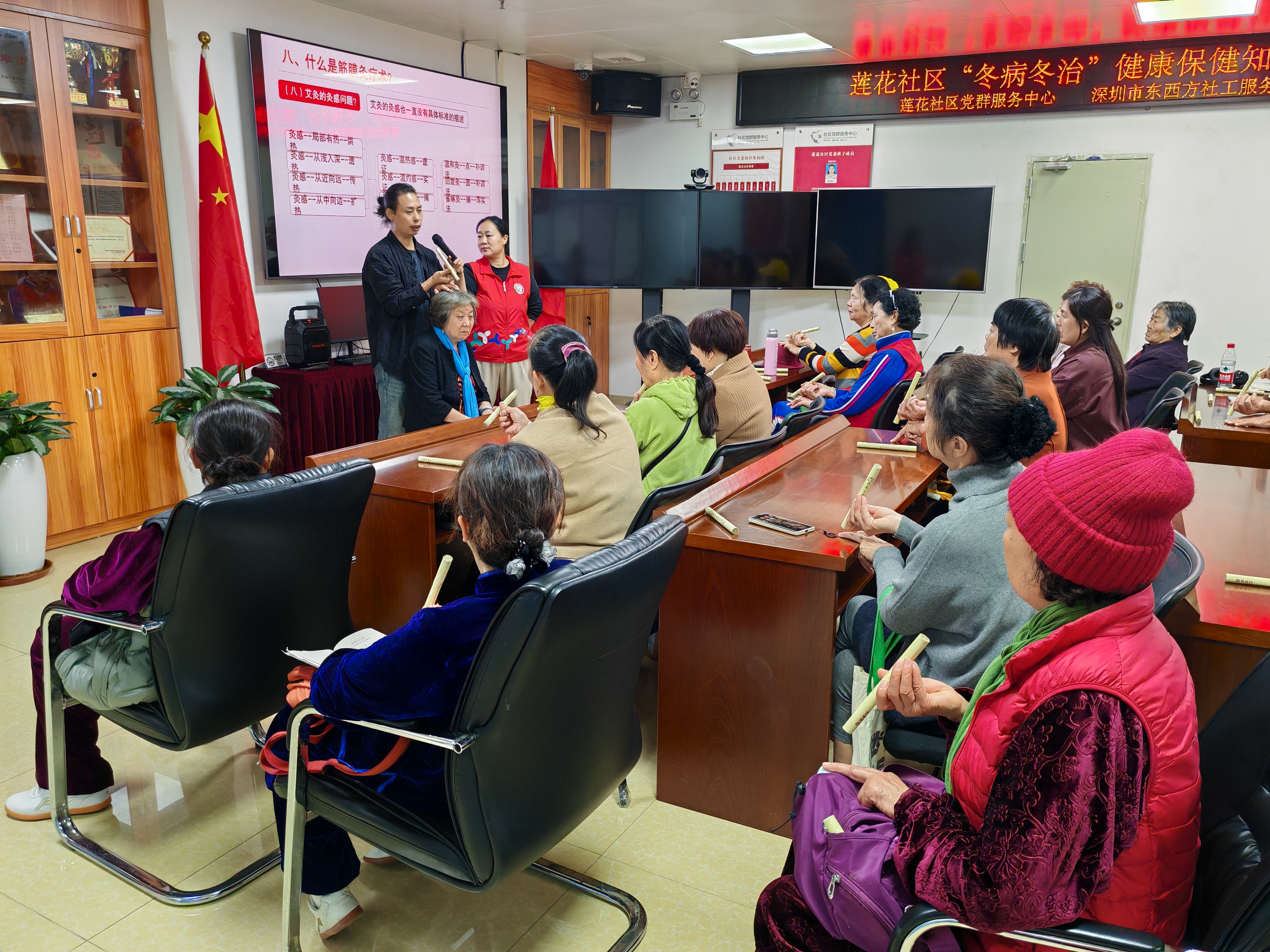罗湖家园网讯:随着冬季的深入,疾病的高发期也随之而来。为了进一步提高辖区居民的保健意识,了解和掌握冬季养生知识,倡导全民健康理念,恰逢冬至佳节前夕,莲花社区党群服务中心于2024年12月13日上午成功举办“冬至养生 健康随行”主题活动。本次活动有幸邀请到了喜来艾健康管理养生咨询师崔老师作为主讲嘉宾。