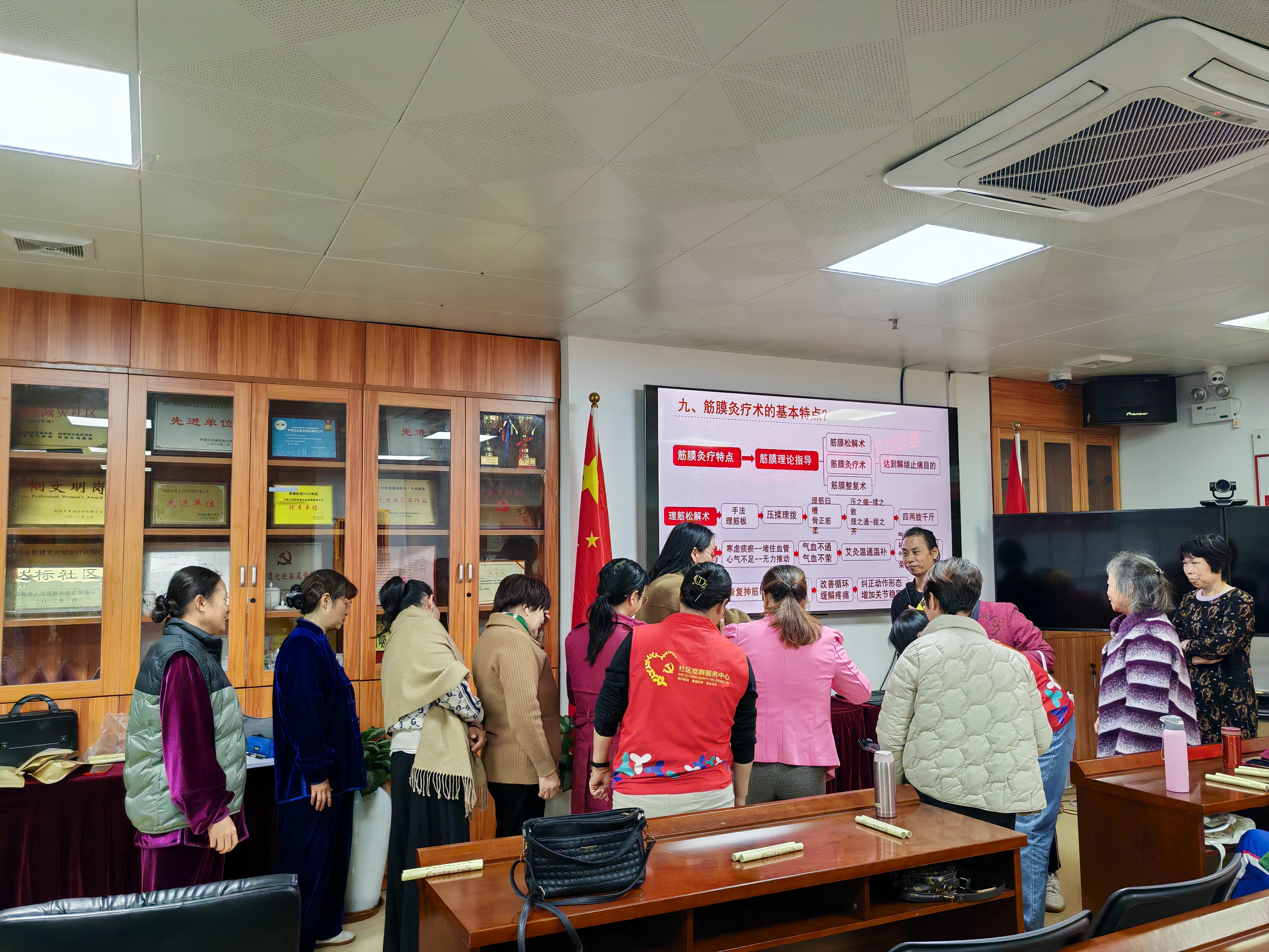 为了让居民们更加直观地了解筋膜灸疗的效果,崔老师现场演示了相关操作,并带领大家进行了站拉筋凳保健操的练习。居民们纷纷表示,这样的活动既轻松又暖和,让他们感受到了冬季养生的乐趣和重要性。讲座结束后,居民们纷纷表示要将学到的知识应用到日常生活中,树立“预防”大于“治疗”的养生理念。