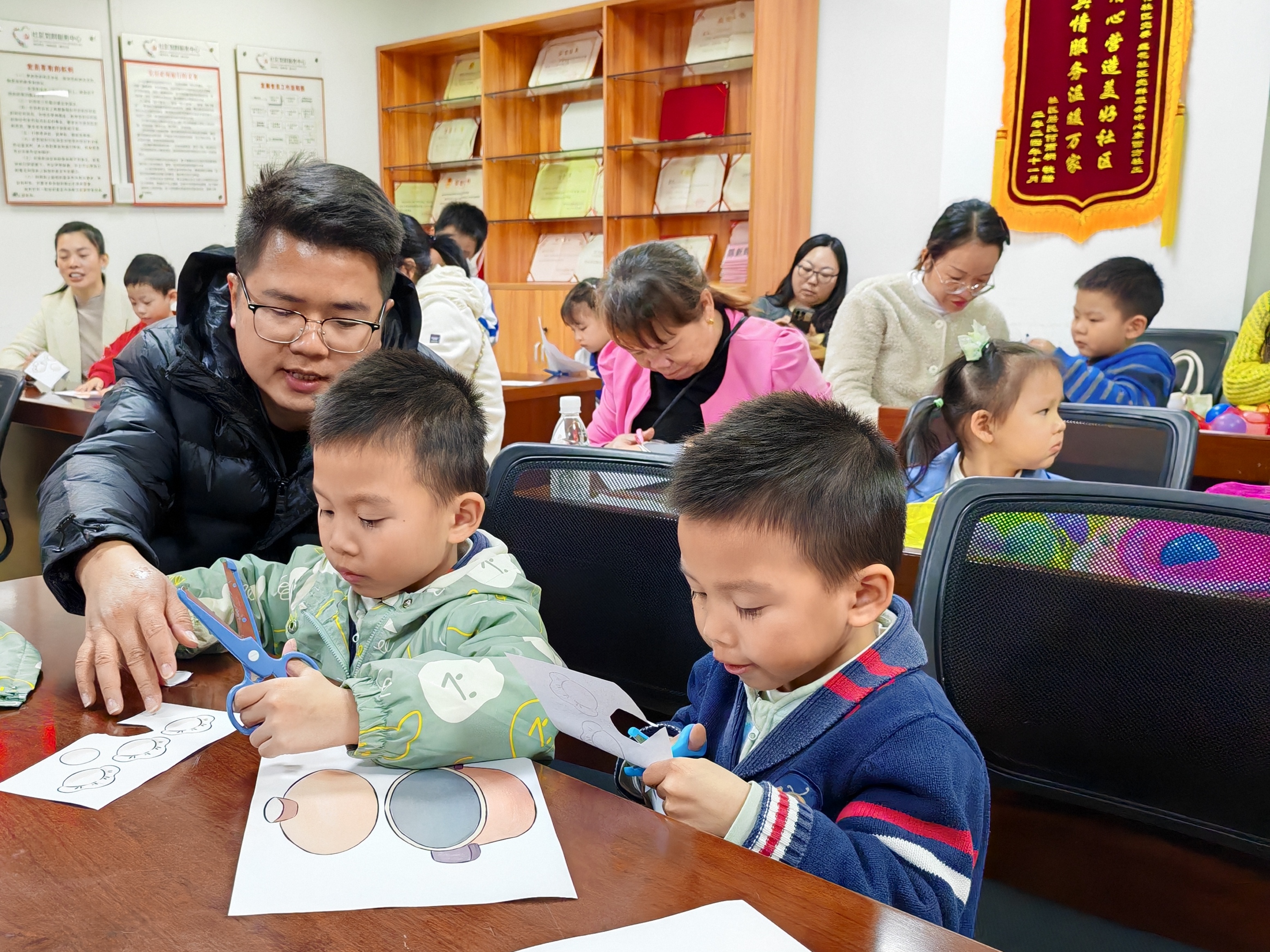 随后,活动的重头戏——亲子创作“创意汤圆DIY画作”精彩上演。孩子们在家长的陪伴下,用稚嫩的小手小心翼翼地折叠、粘贴,创作出一幅幅充满童趣的汤圆画作。工作人员在一旁耐心指导,不时给予鼓励与赞美,使得每一幅作品都充满了创意与活力,仿佛为寒冷的冬日增添了一抹温暖的春色。尤为值得一提的是,许多平日里忙碌的爸爸们也特意抽出时间,积极参与到这次温馨的亲子活动中。他们与孩子并肩作战,共同享受这难得的亲子时光,空气中弥漫着满满的幸福与温馨。
