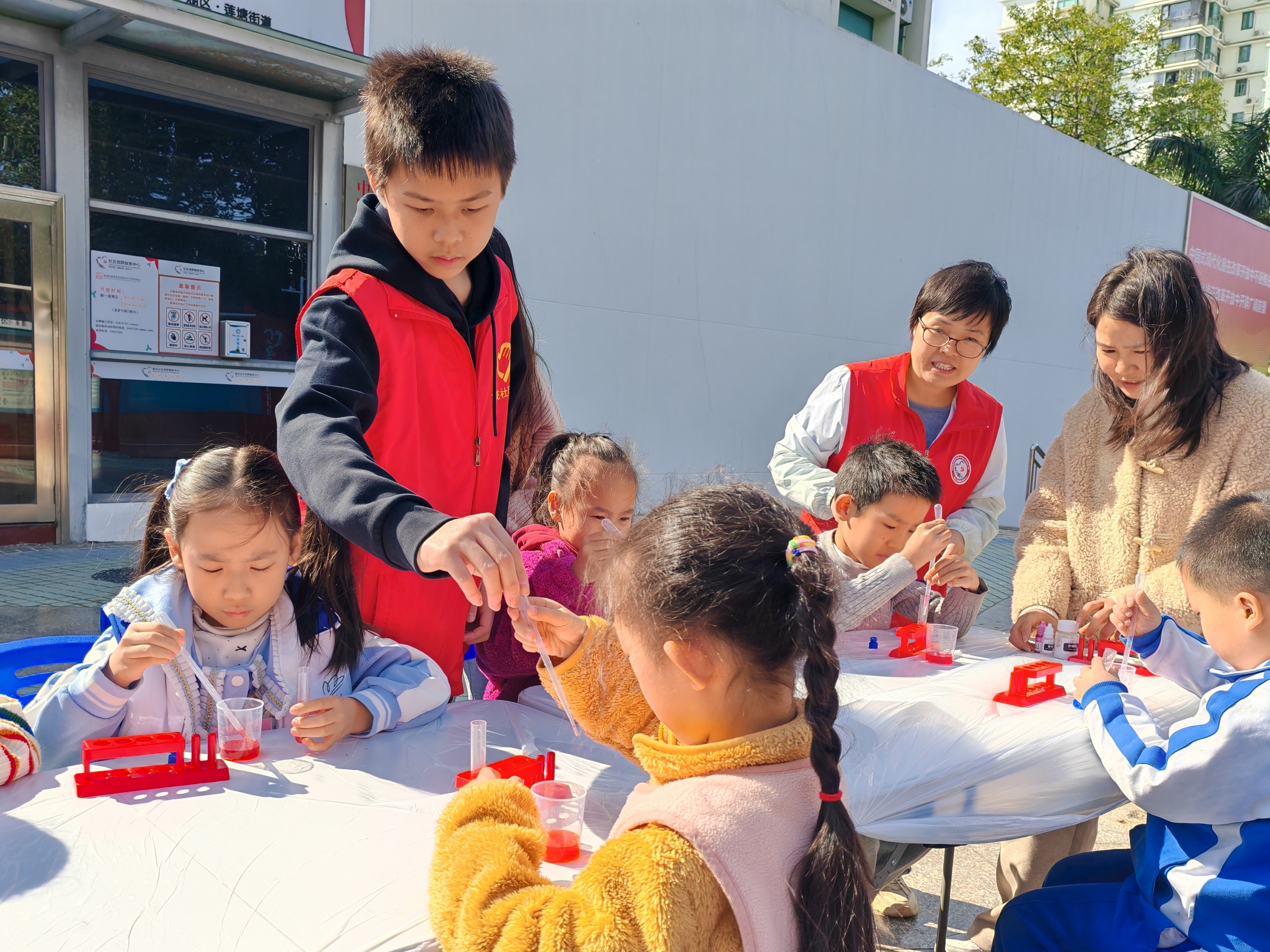 为了增强社区儿童青少年的安全意识,活动特别设置了科学实验环节。工作人员引领孩子们利用水、甜味剂、香味剂、增稠剂以及色素等材料亲手调配出各种饮料,让小朋友们近距离观察并感受这些勾兑饮料的外观与气味。随后,工作人员明确指出这些饮料虽香气扑鼻,但并不适宜饮用。通过这一对比实验,小朋友们深刻认识到市面上许多勾兑饮料的危害性,纷纷表示今后将减少饮用此类饮料。