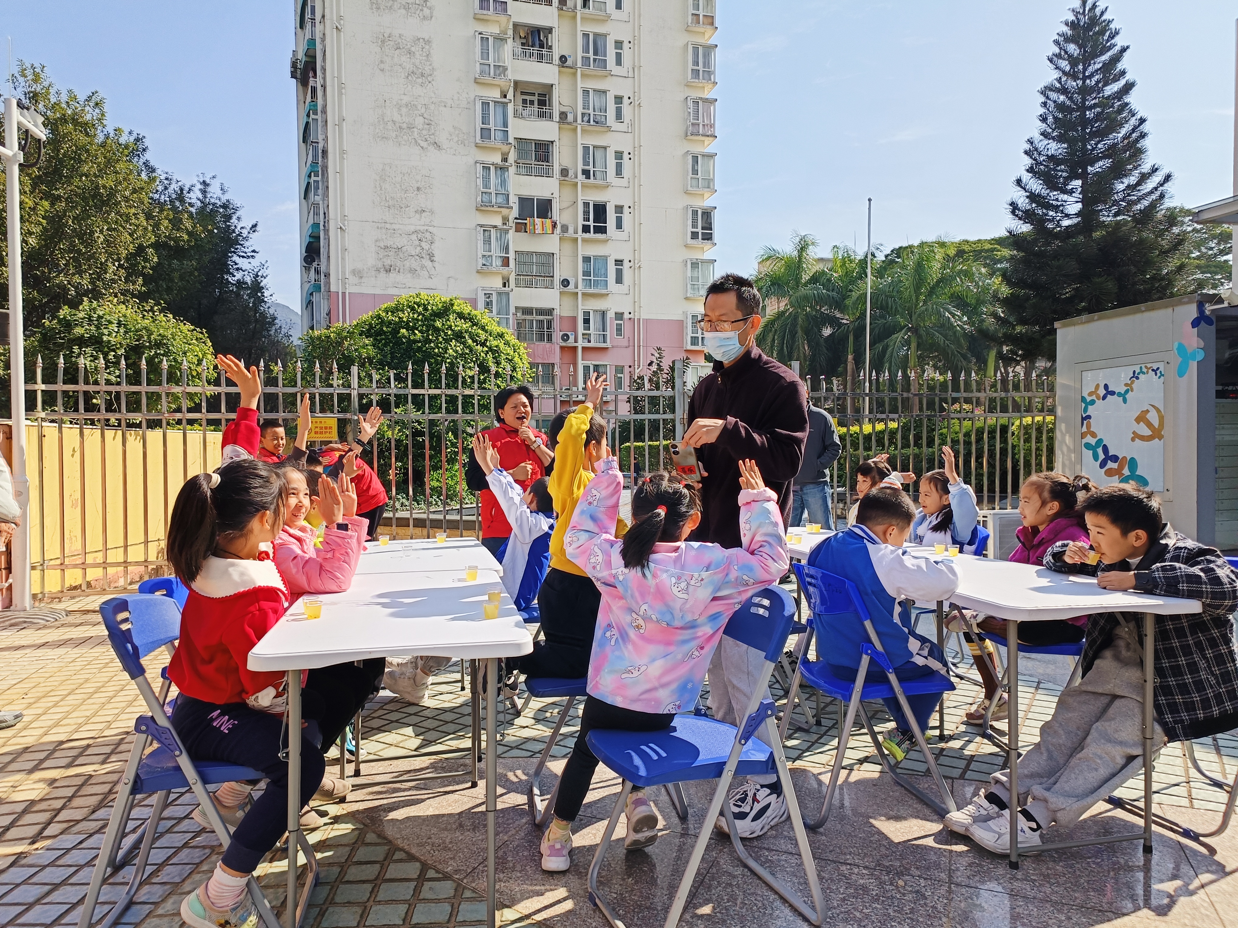 活动当天,阳光明媚,小朋友们在家长的陪伴下,满怀憧憬地步入党群服务中心。工作人员以百香果柠檬茶为例,现场演示了手工饮品的制作流程,并细致入微地讲解了制作过程中的安全要点。小朋友们全神贯注地观看,随后兴奋地参与实操,化身为小小饮品师。