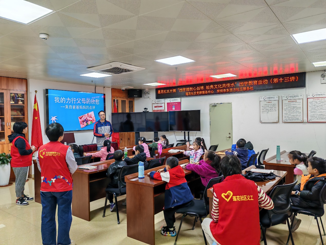 罗湖家园网讯:2024年12月29日上午,莲花社区党群服务中心携手至善国学中心,成功举办了“国学浸润心·经典共传承”系列教育活动的第十三讲——“或饮食,或坐走,长者先,幼者后”。本次活动特别结合了即将到来的寒假与春节,旨在通过深入学习《弟子规》中《出则悌》篇章的礼仪精髓,深化孩子们对国学经典的理解,并传承孝道文化。