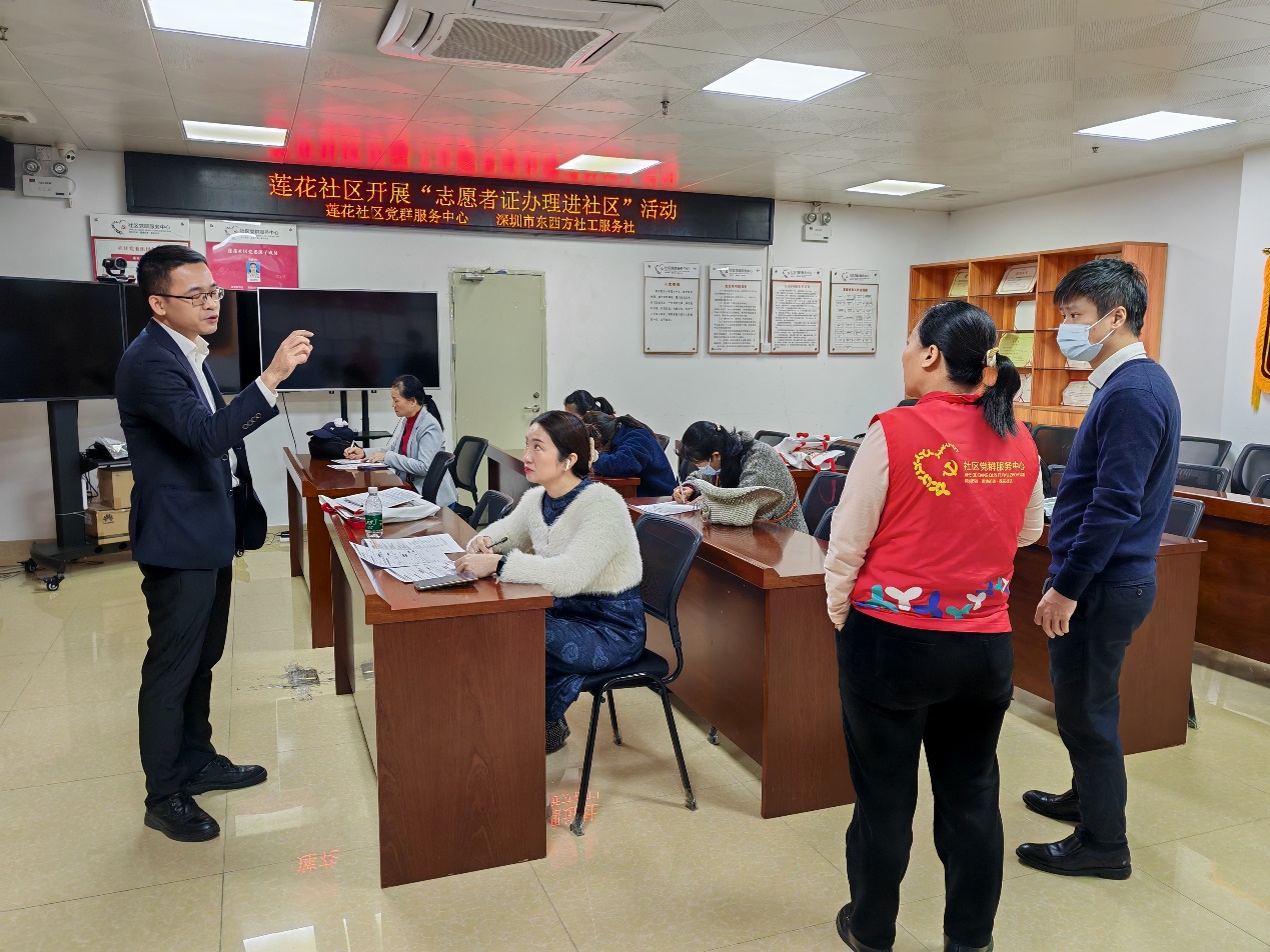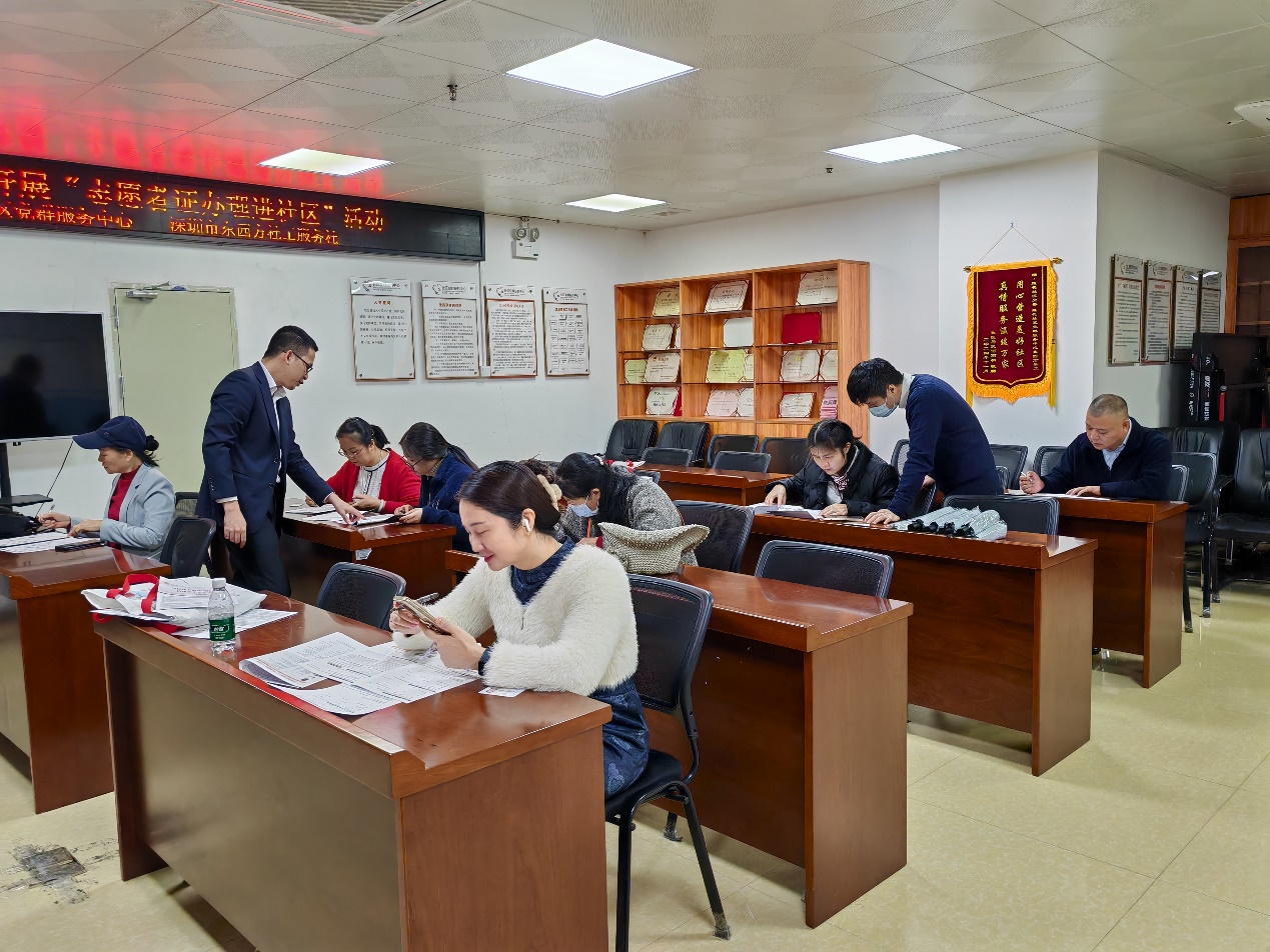 罗湖家园网讯:为积极响应团委与志愿者协会的倡议,加速推进注册制志愿者证的普及与应用,并切实保障志愿者的权益与福利,莲花社区党群服务中心团委联合中国银行,于2024年12月30日上午,在社区新时代文明实践站开展一场面向全体志愿者的注册志愿者证集中办理活动。