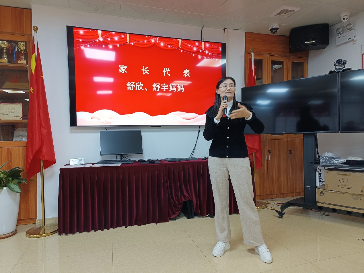 家长代表舒予、舒欣妈妈分享了陪伴孩子学习传统文化的感悟。她感激这个国学平台给予的机会,表示自己每次都陪伴孩子上课,见证了孩子在学业、礼仪、人际交往等方面的显著进步。