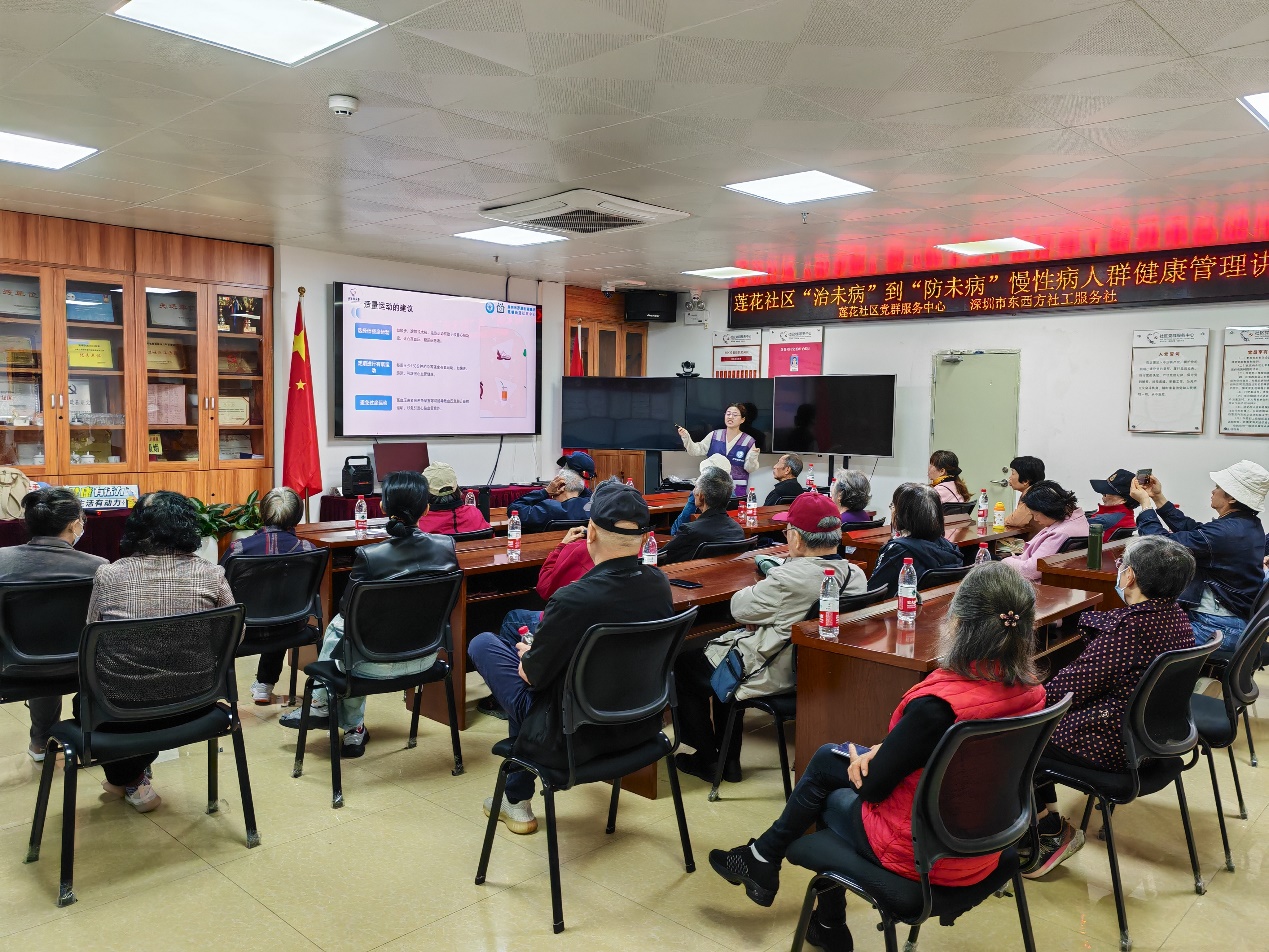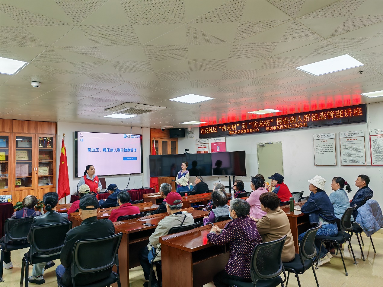 罗湖家园网讯:为了加深居民对慢性疾病的理解,并强化其自我管理效能,莲花社区党群服务中心联合莲塘街道办公共服务办公室,于2025年1月7日上午开展了主题为“关爱糖尿病,关爱高血压”的健康科普讲座,旨在提升居民对自我监测血压、血糖重要性的认识,加强自我保健能力,以期达到有效控制疾病、提升居民整体生活质量。