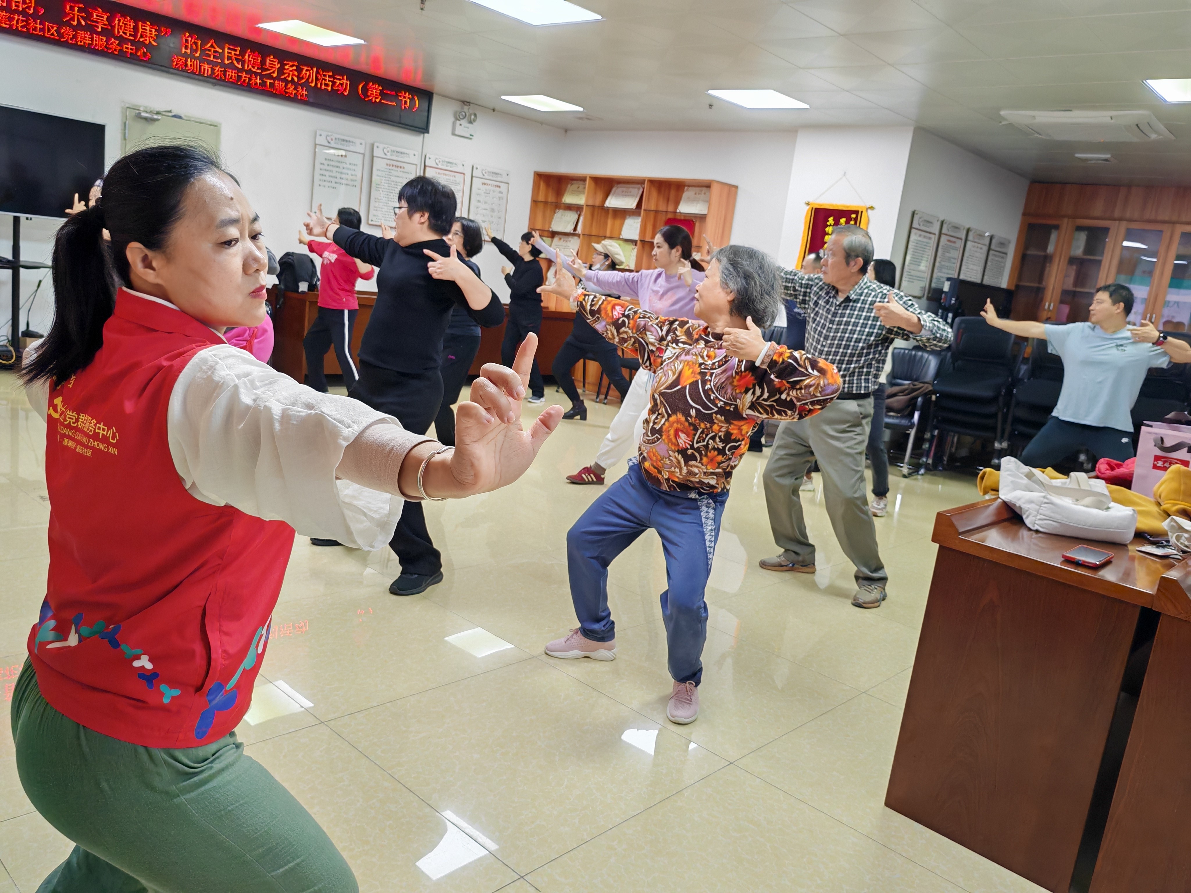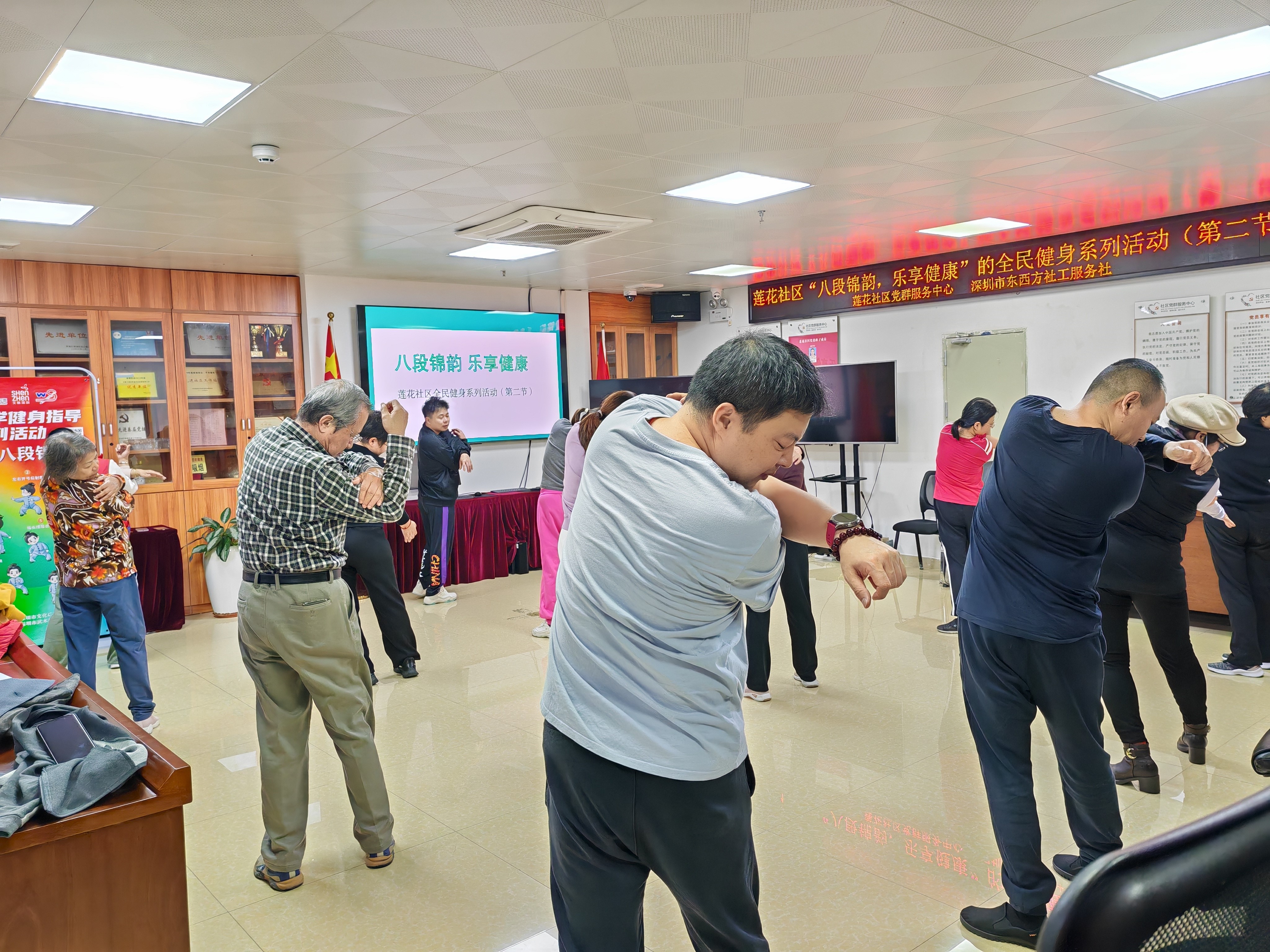 罗湖家园网讯:2月28日上午,莲塘街道莲花社区在新时代文明实践站成功举办了第二期八段锦健身操学习活动,旨在弘扬中华优秀传统文化,推广传统健身方式,提升社区居民的身体素质,并促进邻里间的交流与互动。