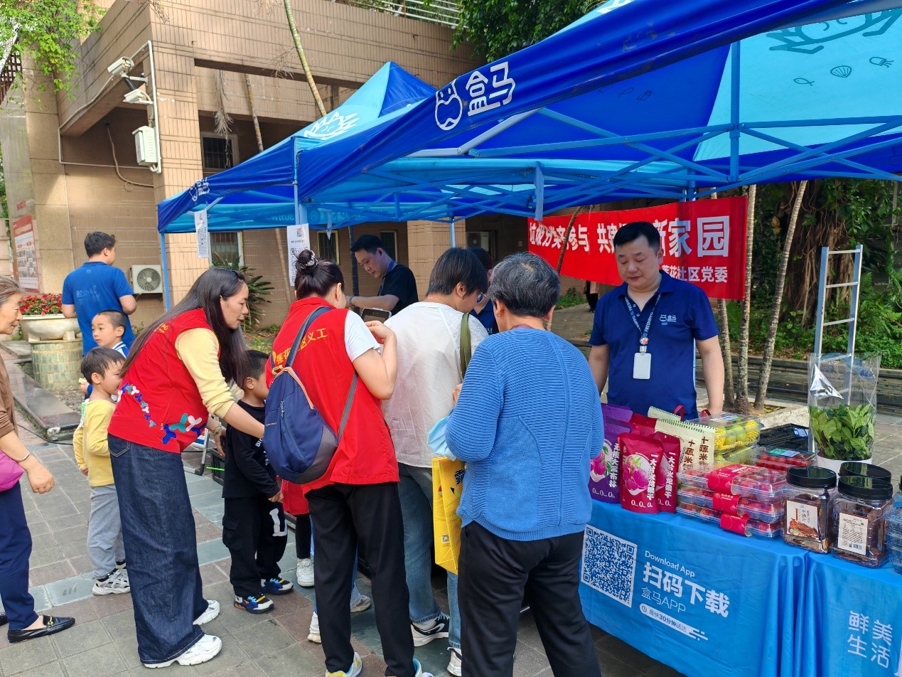 此次活动通过 “摆摊设点”的形式,吸引了大量居民走出家门,积极参与其中。在便民集市区域,东西方社工积极协助,确保活动有序进行。同时,上海盒马网络科技有限公司携带自家明星产品进行现场展示和试吃试用,居民们纷纷驻足体验,企业也借此机会收集消费者意见,与消费者进行了深入的互动交流,现场气氛热烈。