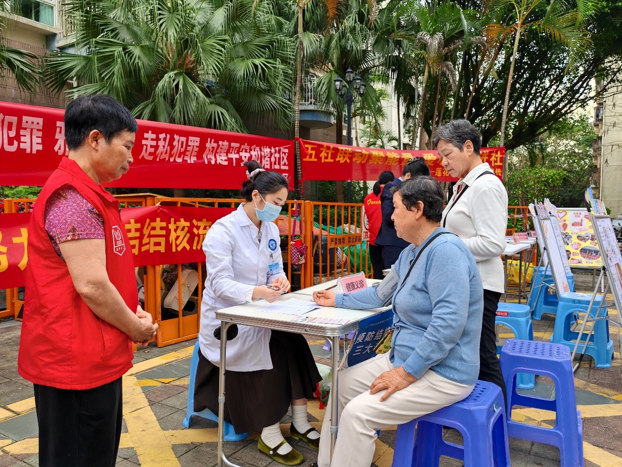 在义诊区域,莲花社康和普瑞国际眼科的医护人员共同为居民提供了血压、血糖测量以及眼部疾病筛查等健康咨询服务。他们耐心细致地解答居民的疑问,并针对常见慢性病、传染病等向居民普及临床表现、预防措施以及日常护理等方面的知识。
