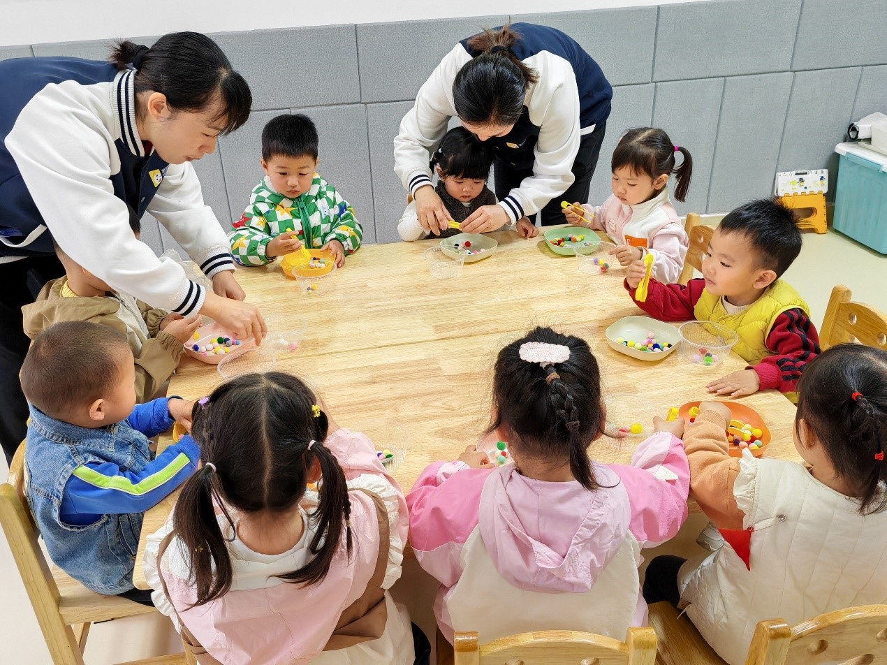 在培养幼儿的独立性与自主性方面,老师们特别注重对手部精细动作的培养。通过穿孔、拼搭等生活游戏,孩子们在玩乐中锻炼了小手肌肉,提高了精细动作的发展水平,同时也体验到了专注的快乐,逐渐形成了“内在的自我肯定”。