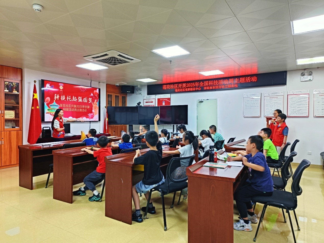 罗湖家园网讯:为弘扬科学精神,推进科普教育,激发儿童青少年对科学的兴趣与梦想,营造浓厚的科学氛围,2025年5月25日上午,莲花社区联合深圳市东西方社工服务社,成功举办了“科技活动周”主题活动。