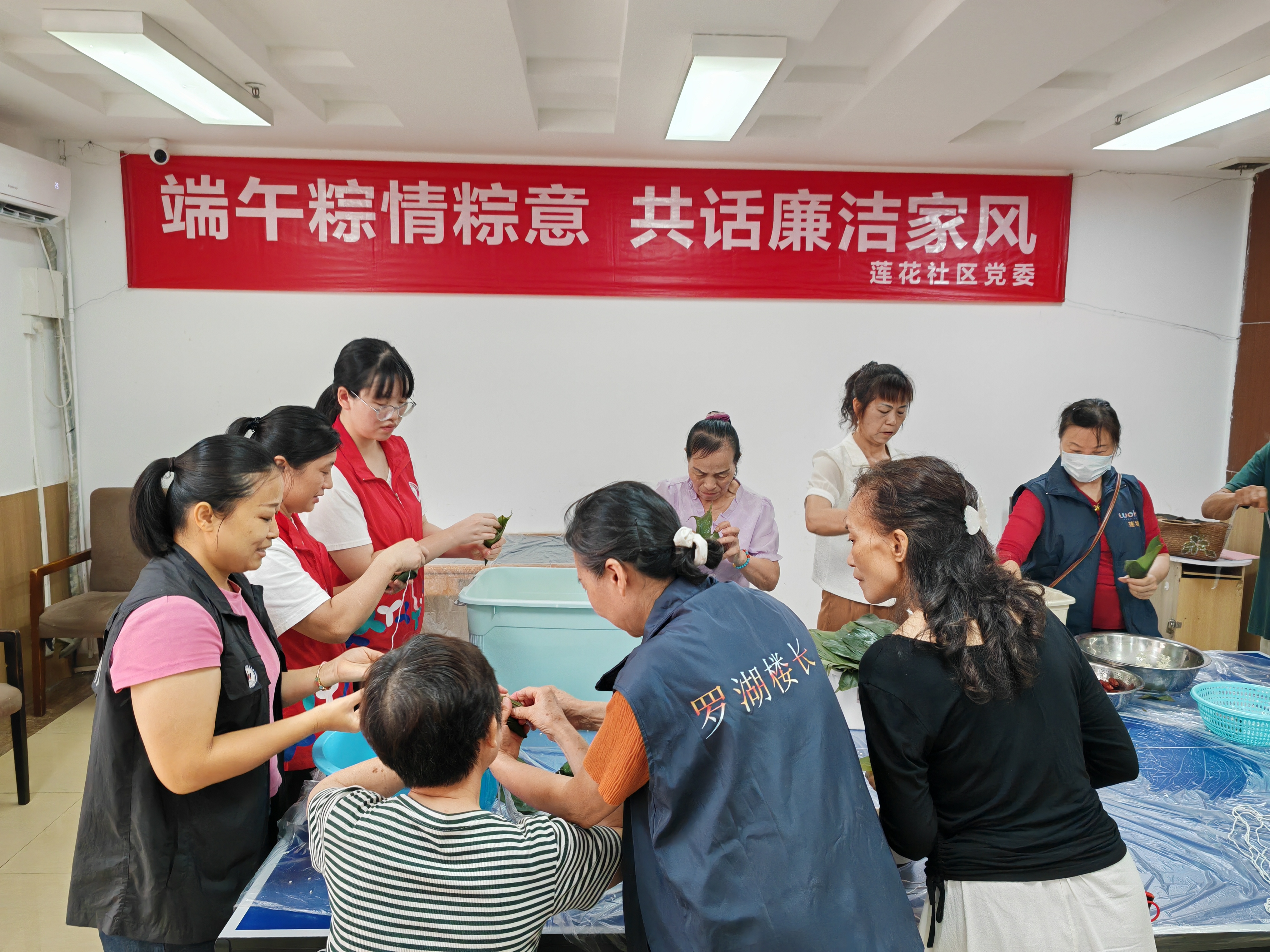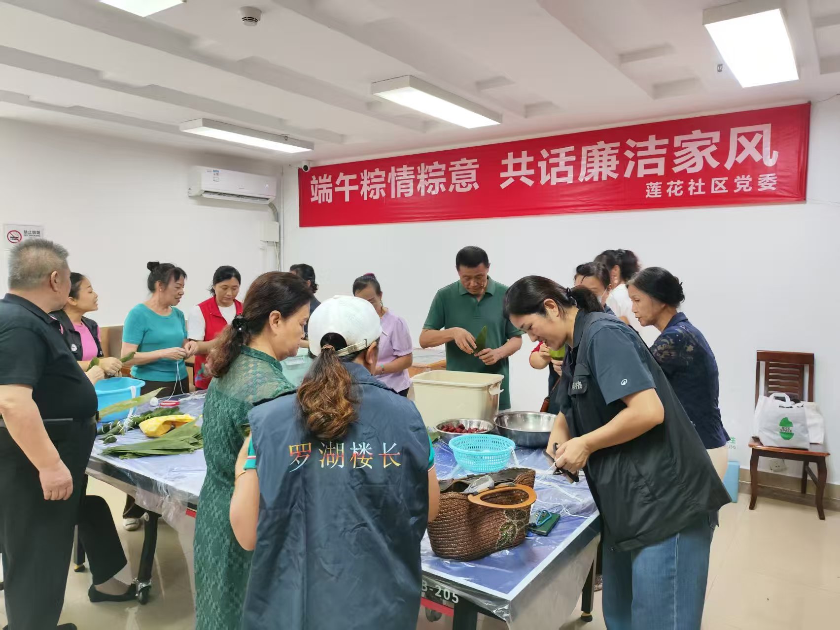 2025年5月29日,莲花社区组织党员居民、综合网格员、名骏豪庭楼栋长、莲花社区长青老龄大学的学员等50余人,欢聚一堂,开展“端午棕情棕意共话廉洁家风”包粽子、吃粽子端午节活动,以传统节日传承文化融入党群联动、孝悌廉洁家风。